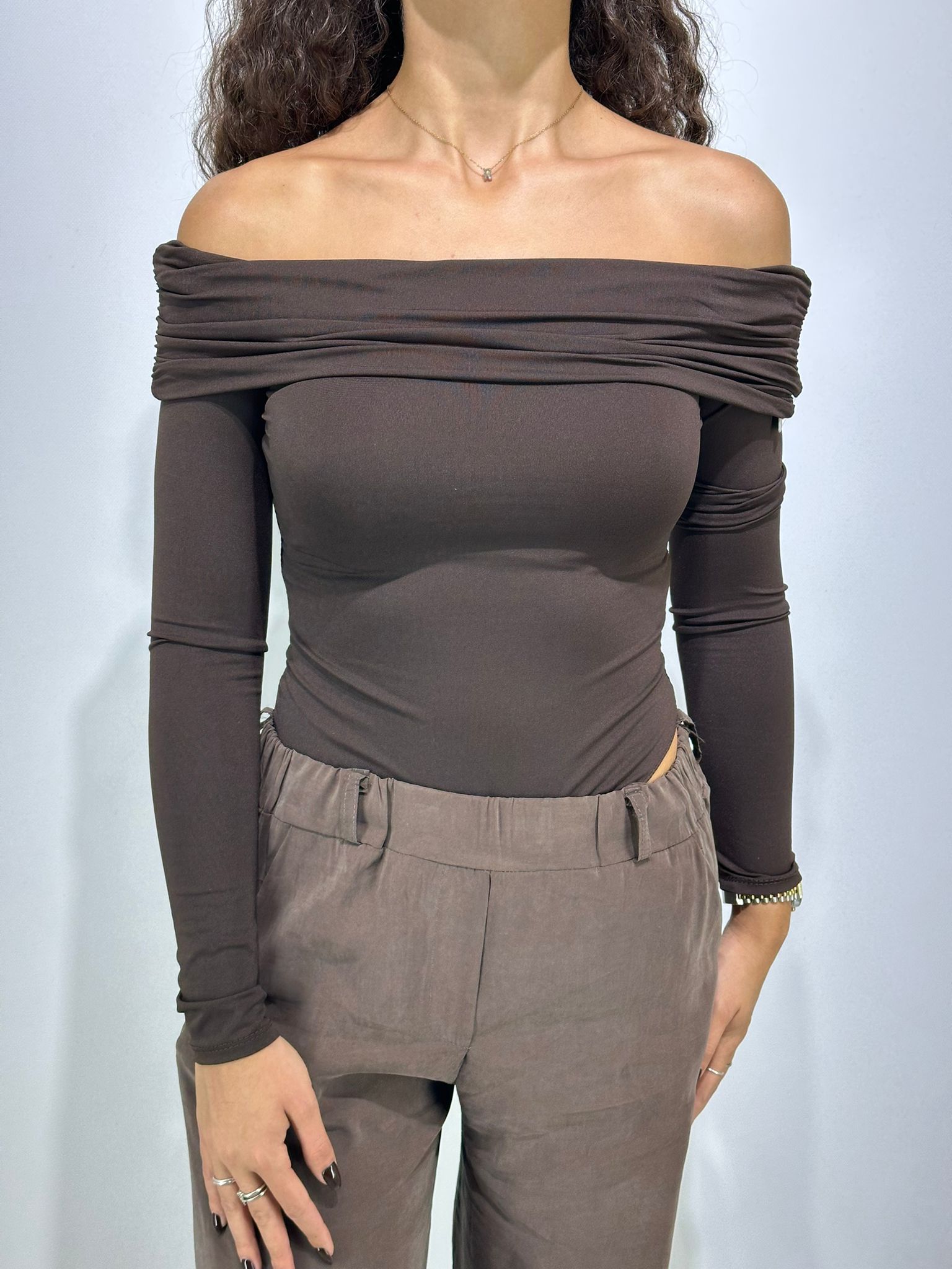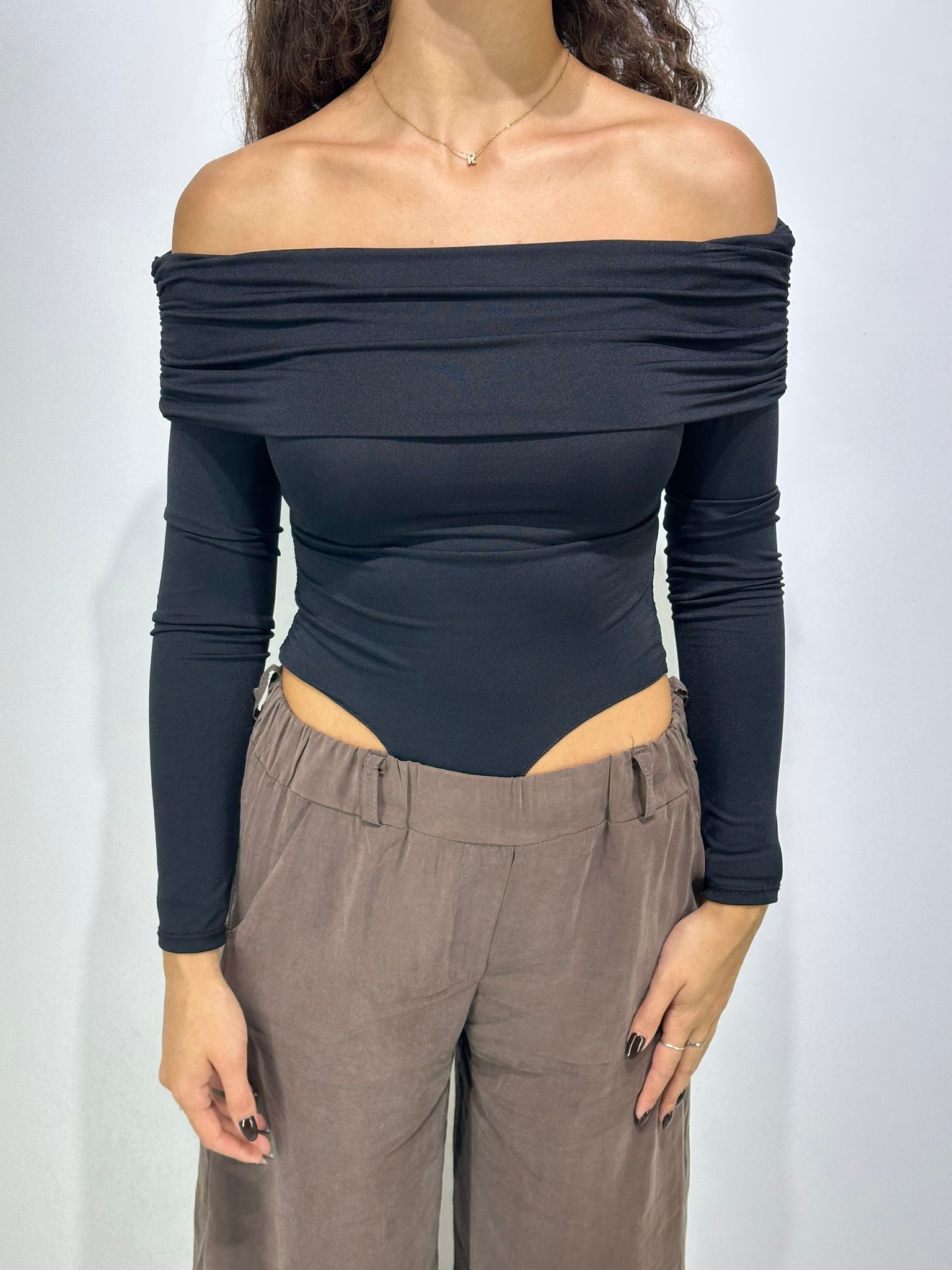 Body in lycra, scollo a barca, manica lunga.
