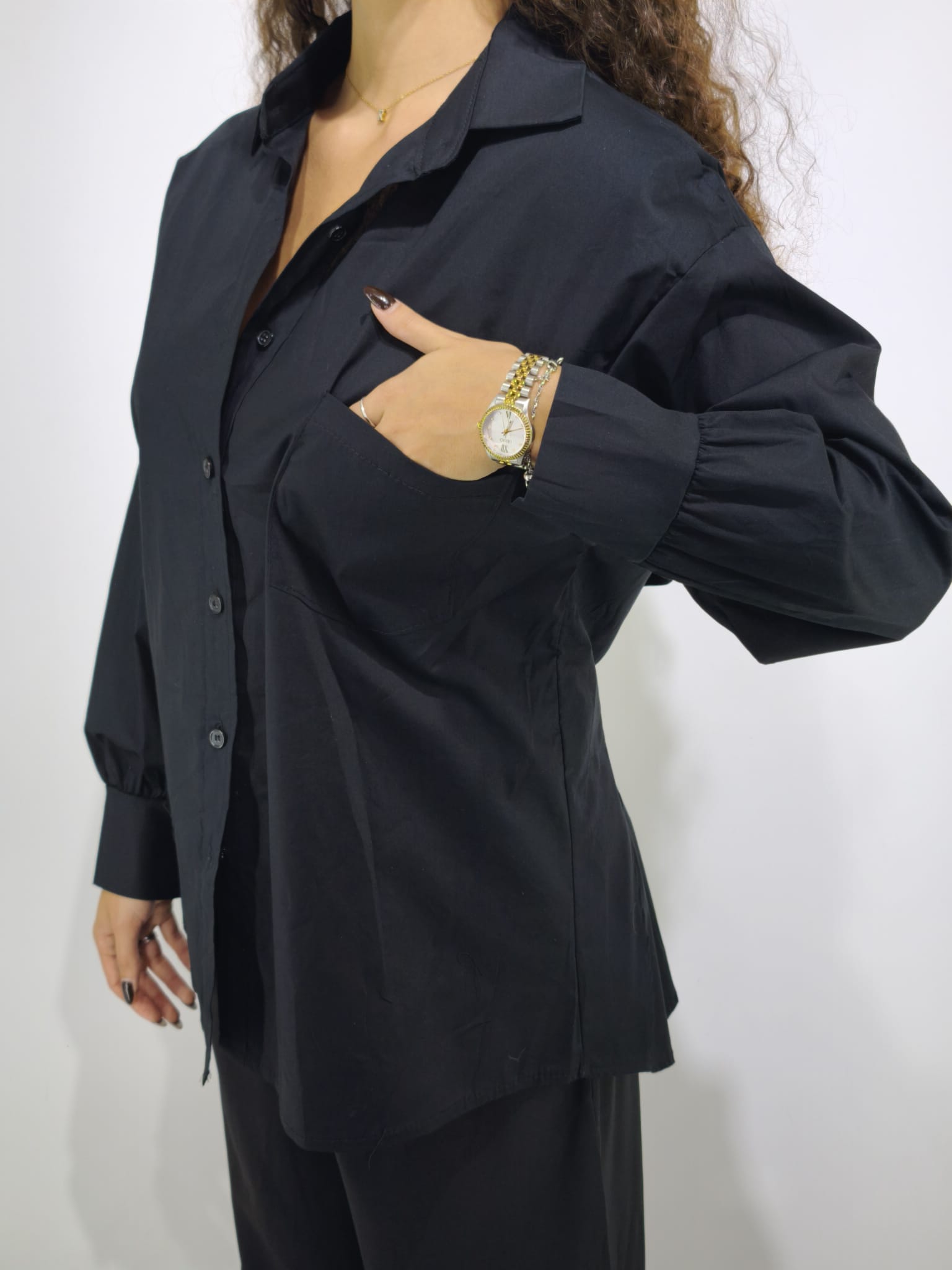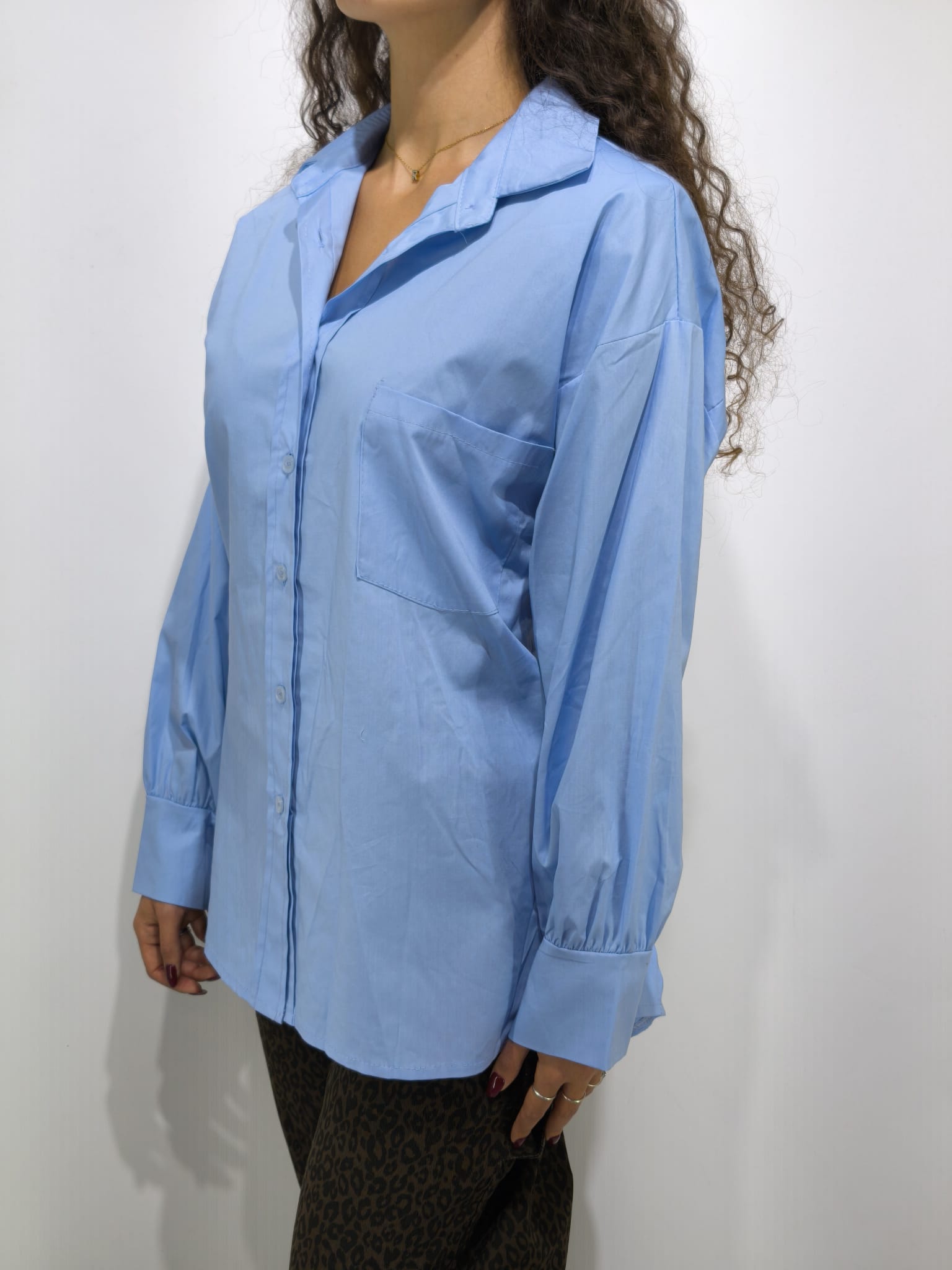 camicia in cotone avvitata con spalline. Taschino funzionale.