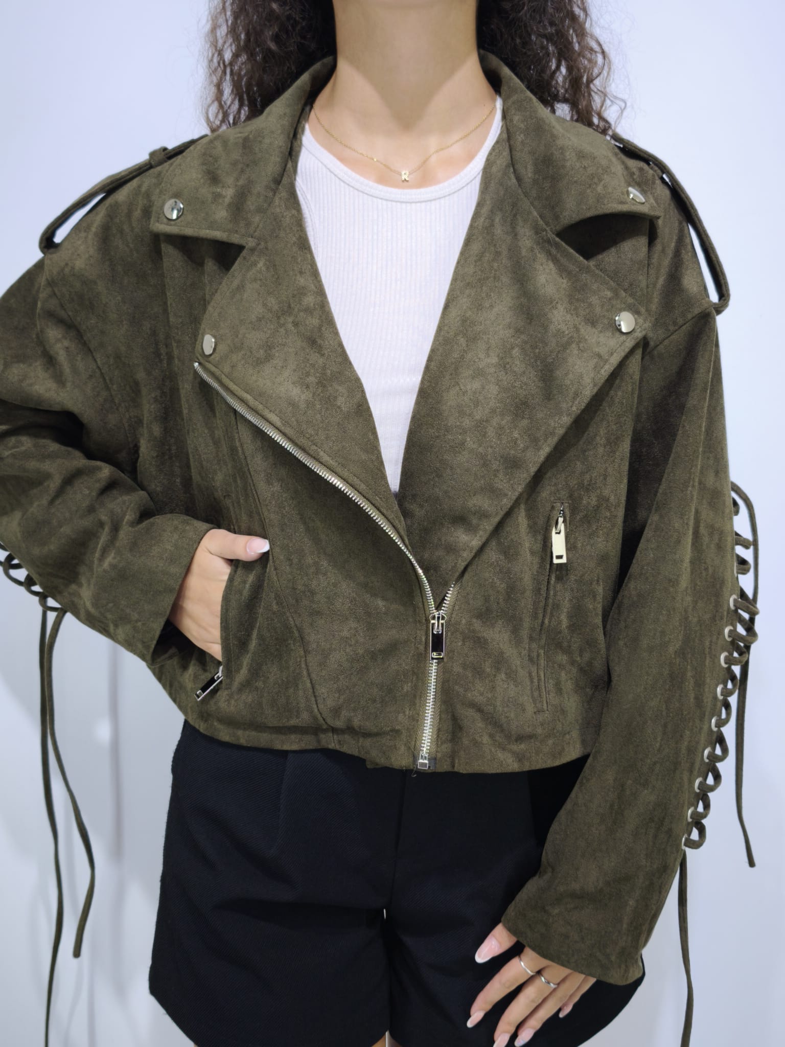 Camicia over con spalline e maniche removibili. modello che veste fino ad una tg.46(XL)