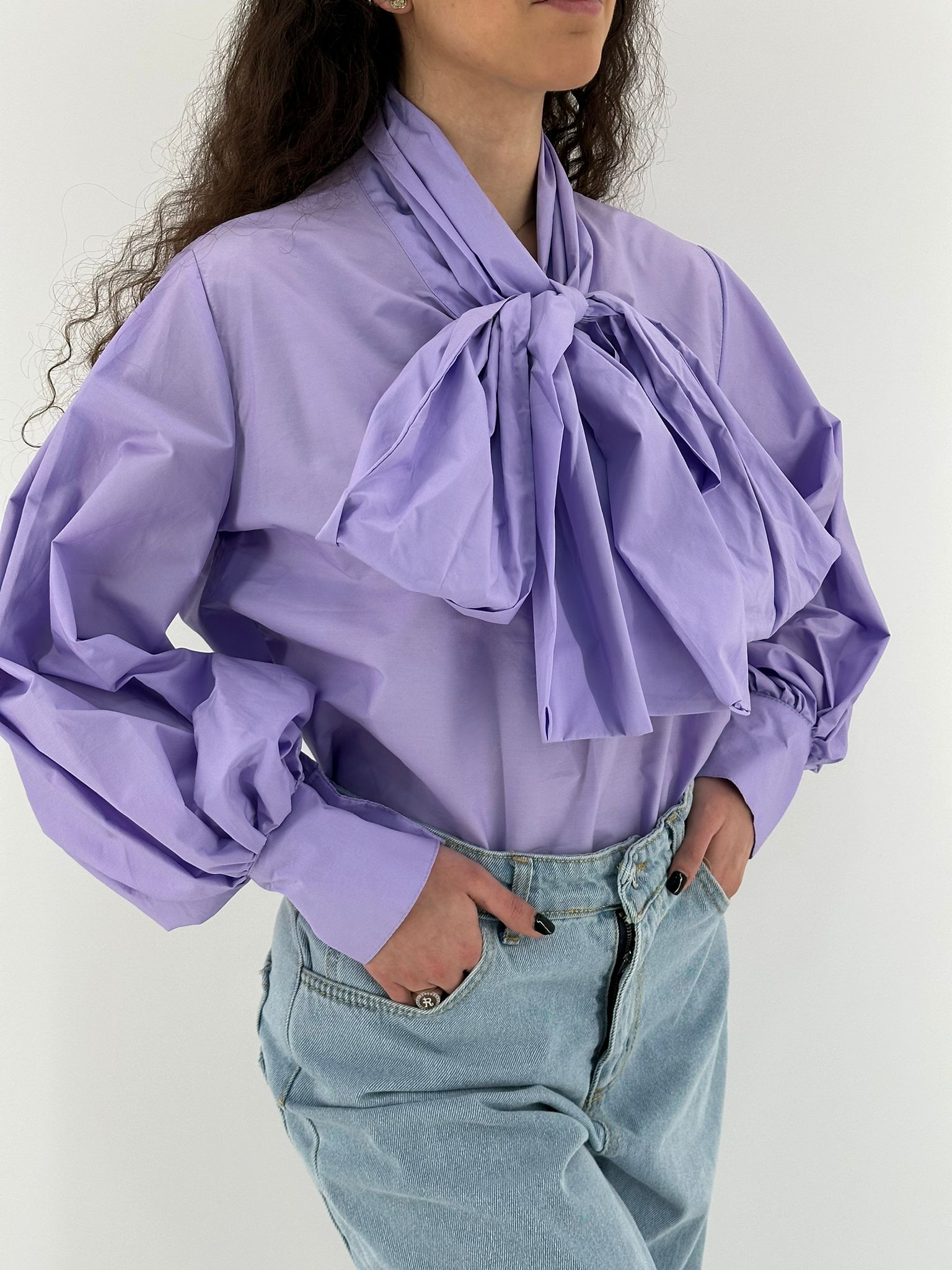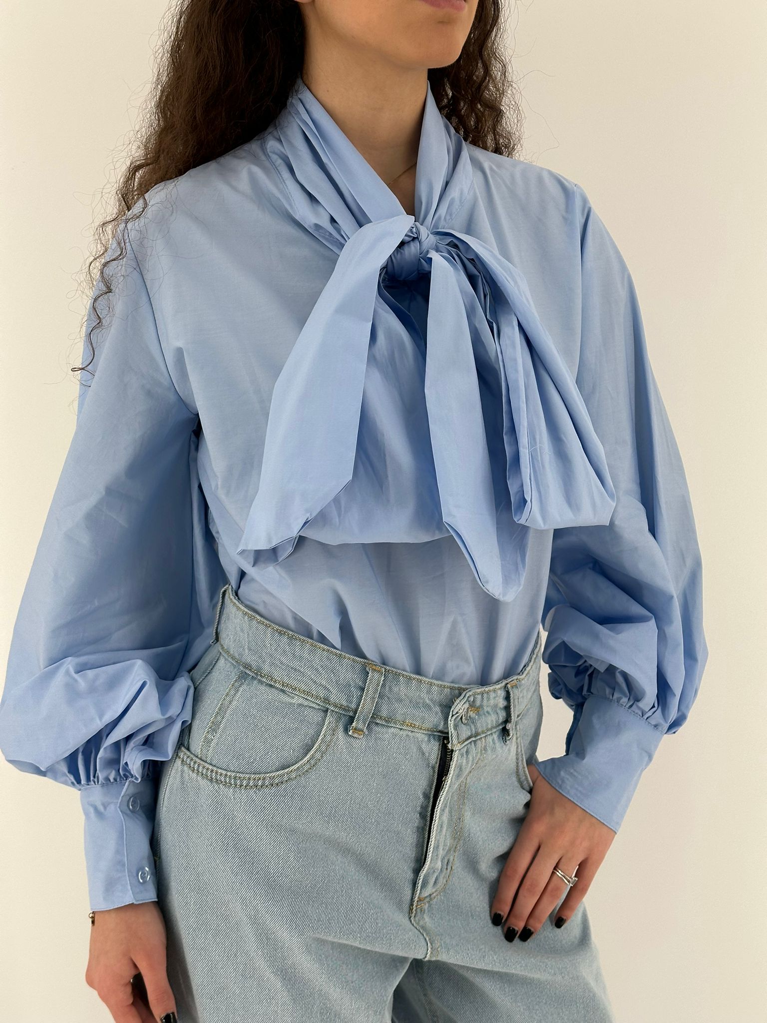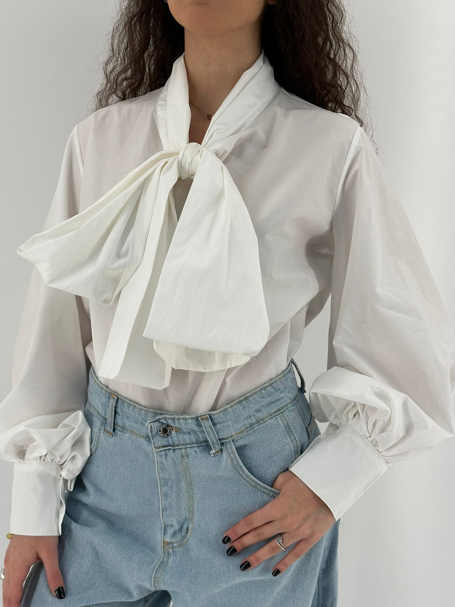 Camicia in cotone con chiusura con fiocco.