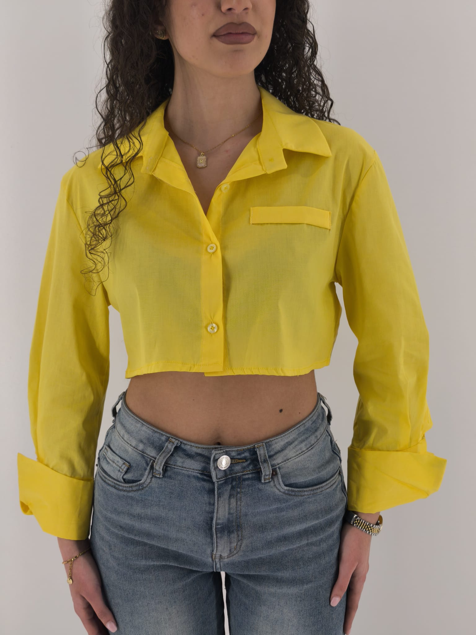 Camicia corta in cotone con finto taschino.