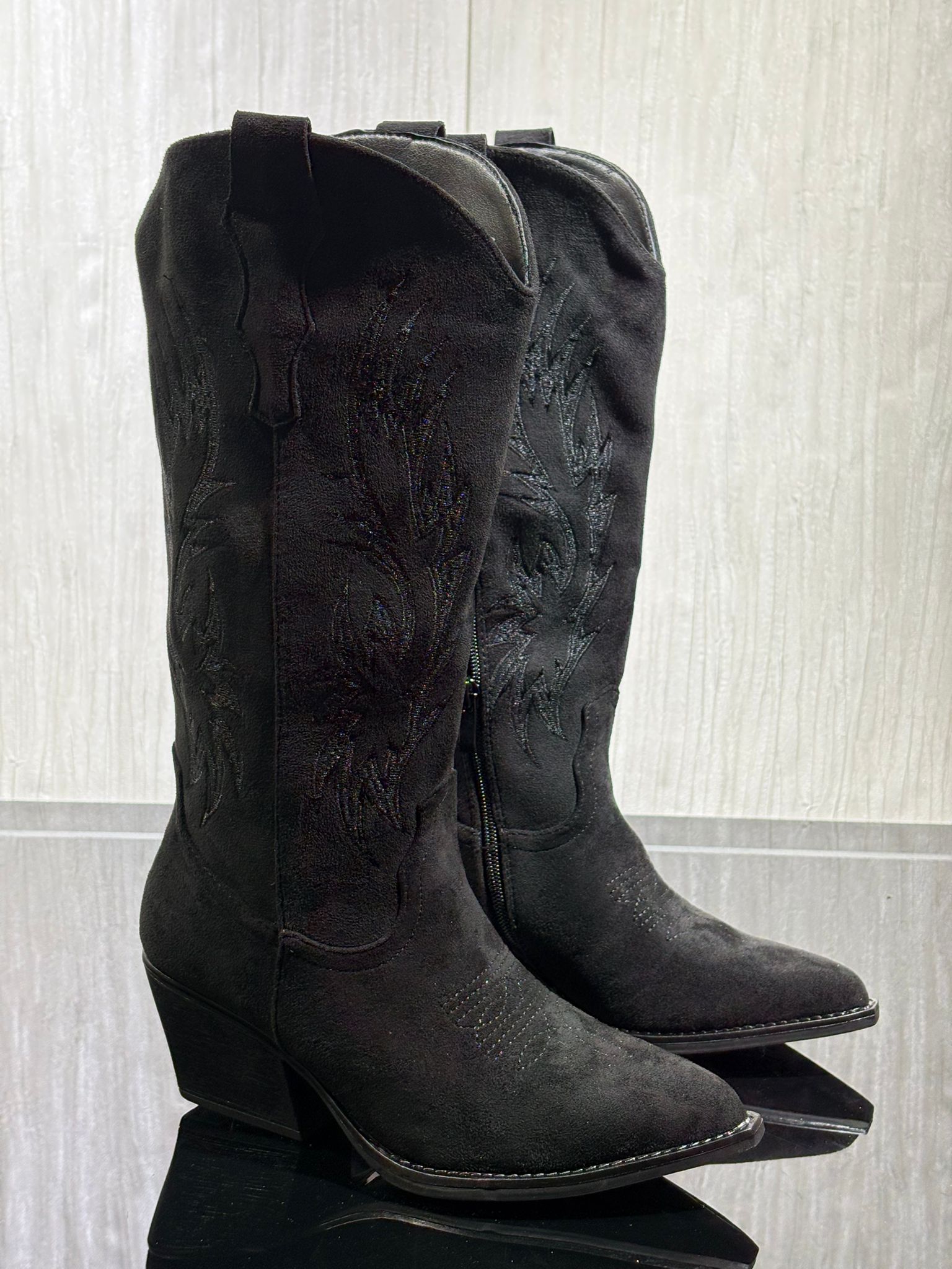 Camperos in camoscio con ricami interni. tacco obliquo alto circa 4 cm.