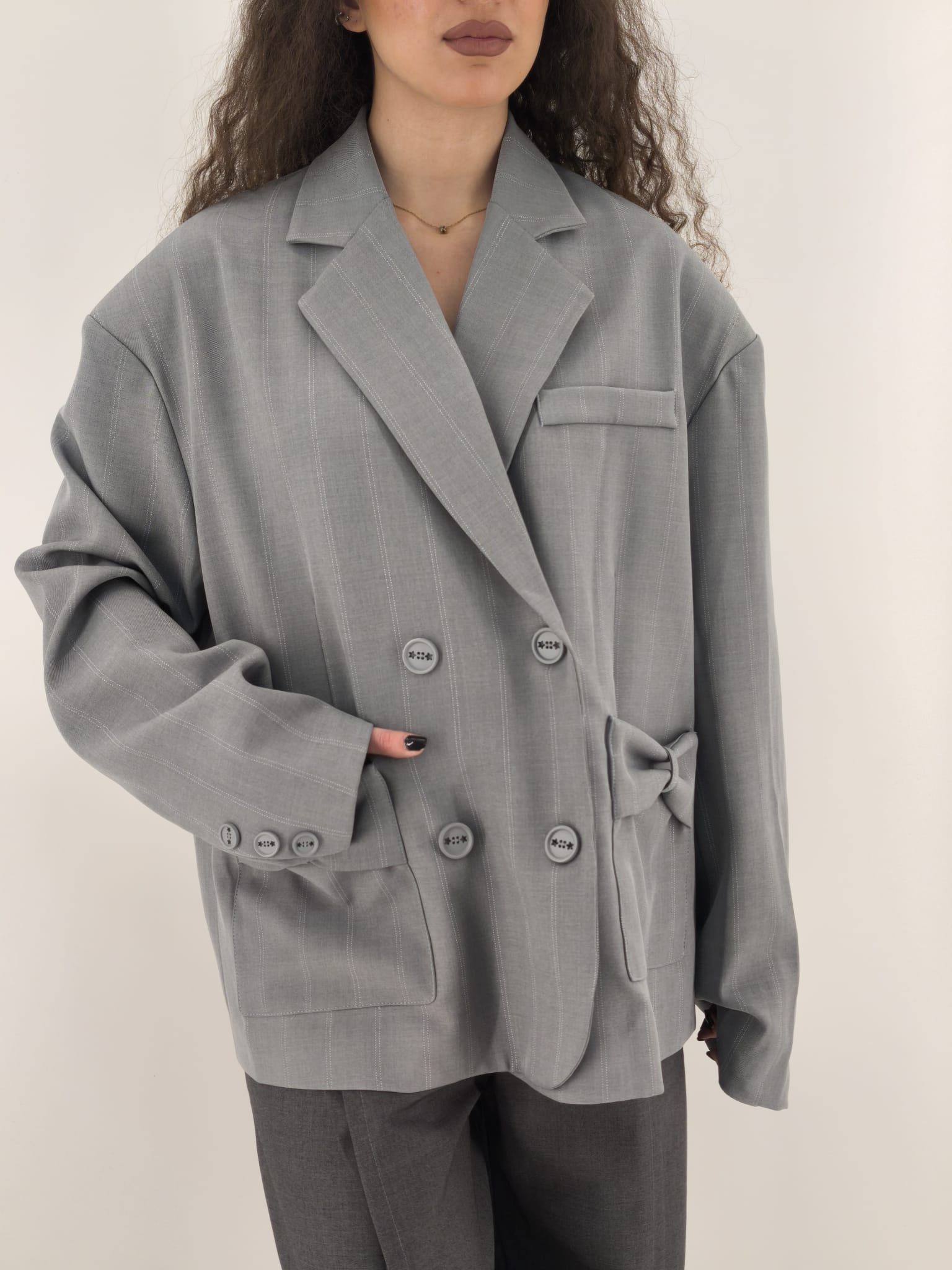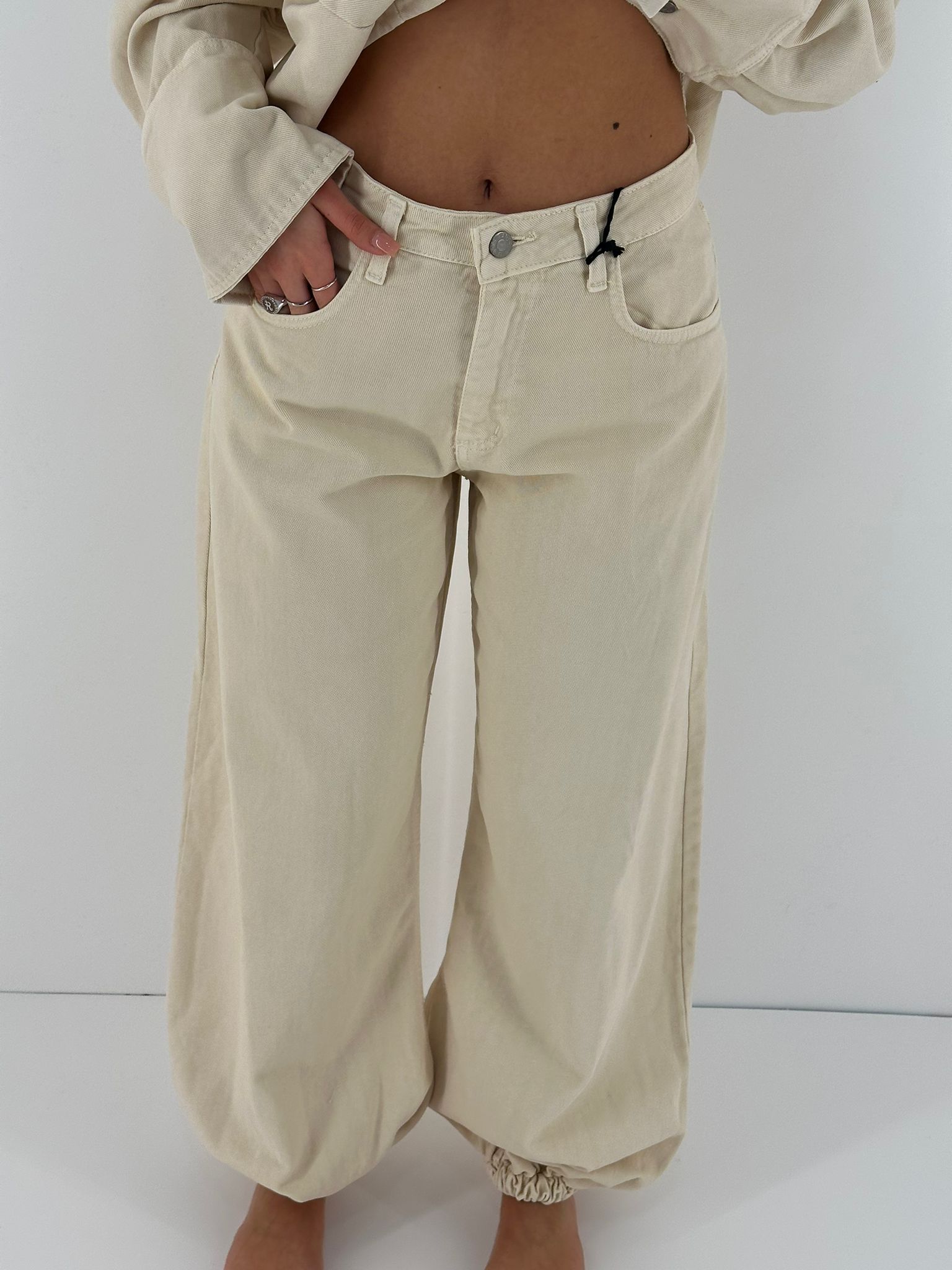 Cord set in jeans , composto da camicia over, e pantaloni con elastico alle caviglie.