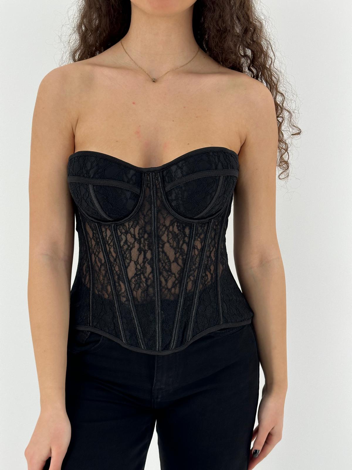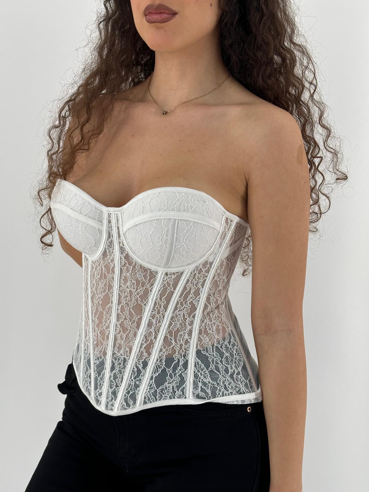 corpetto in merletto con bretelle regolabili e con busto regolabile in larghezza.