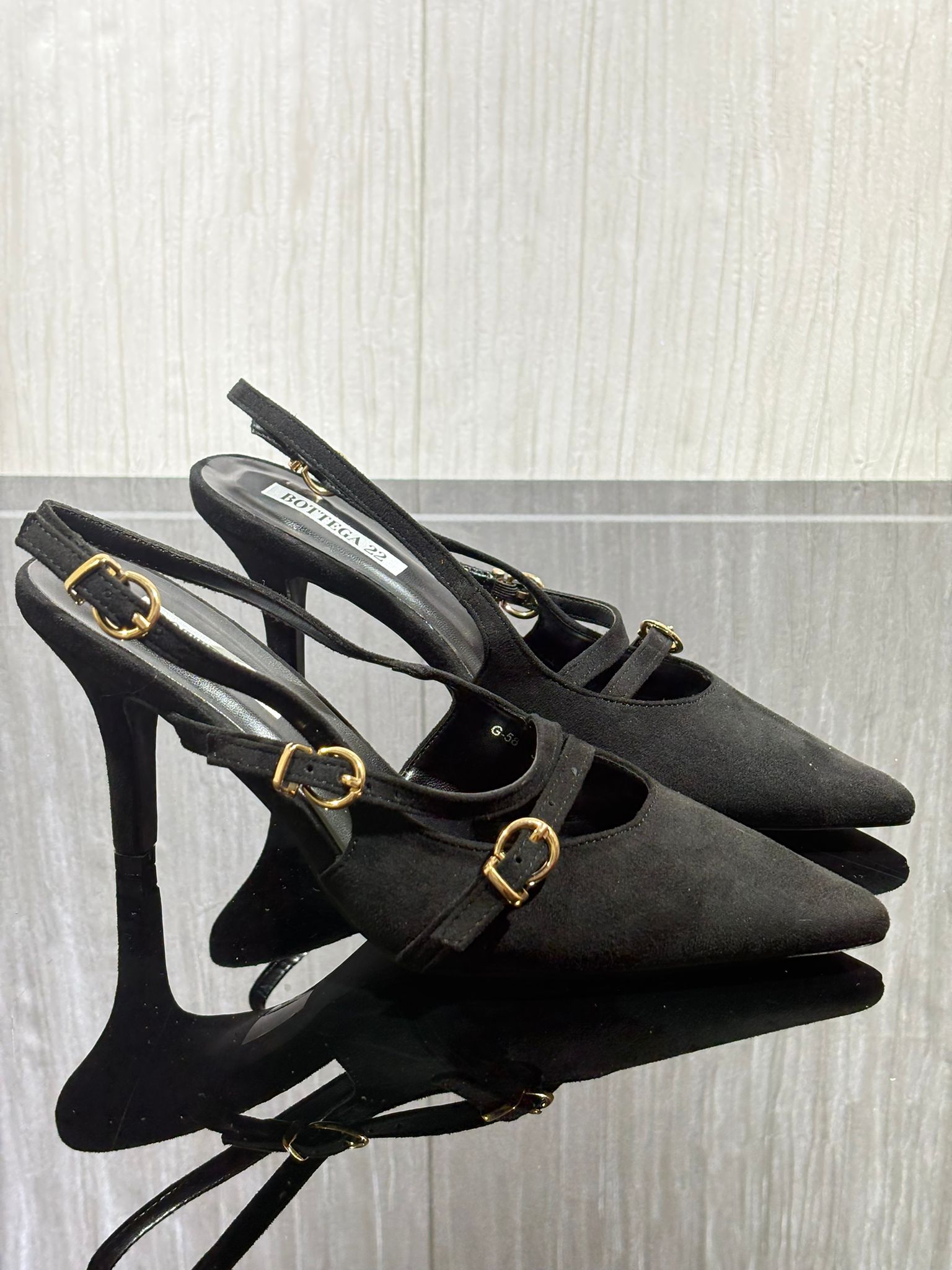 Decollette basso modello chanel / slingback. Tacco alto circa 5 cm.
