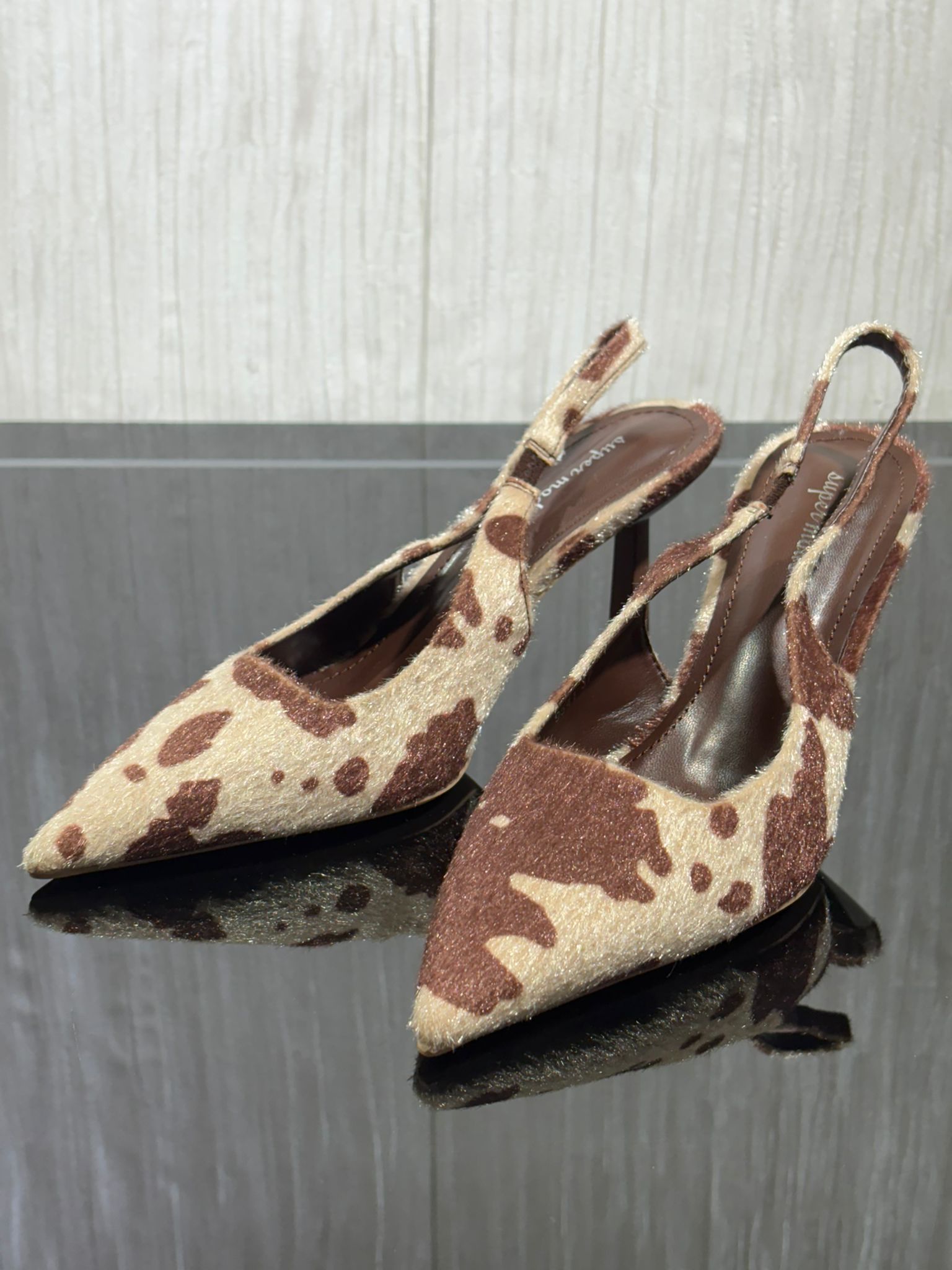 Decollette modello chanel / slingback con tacco a spillo alto circa 4 cm.