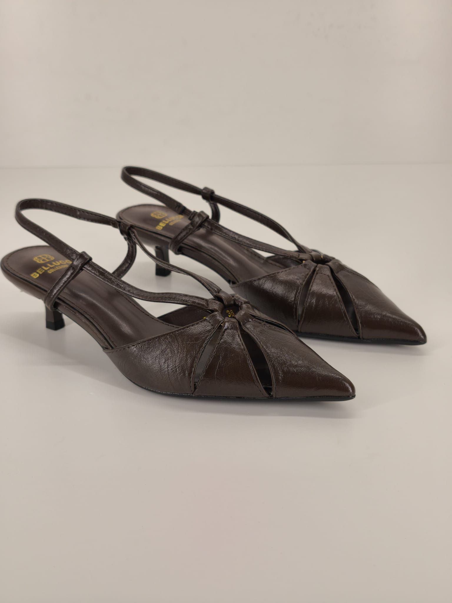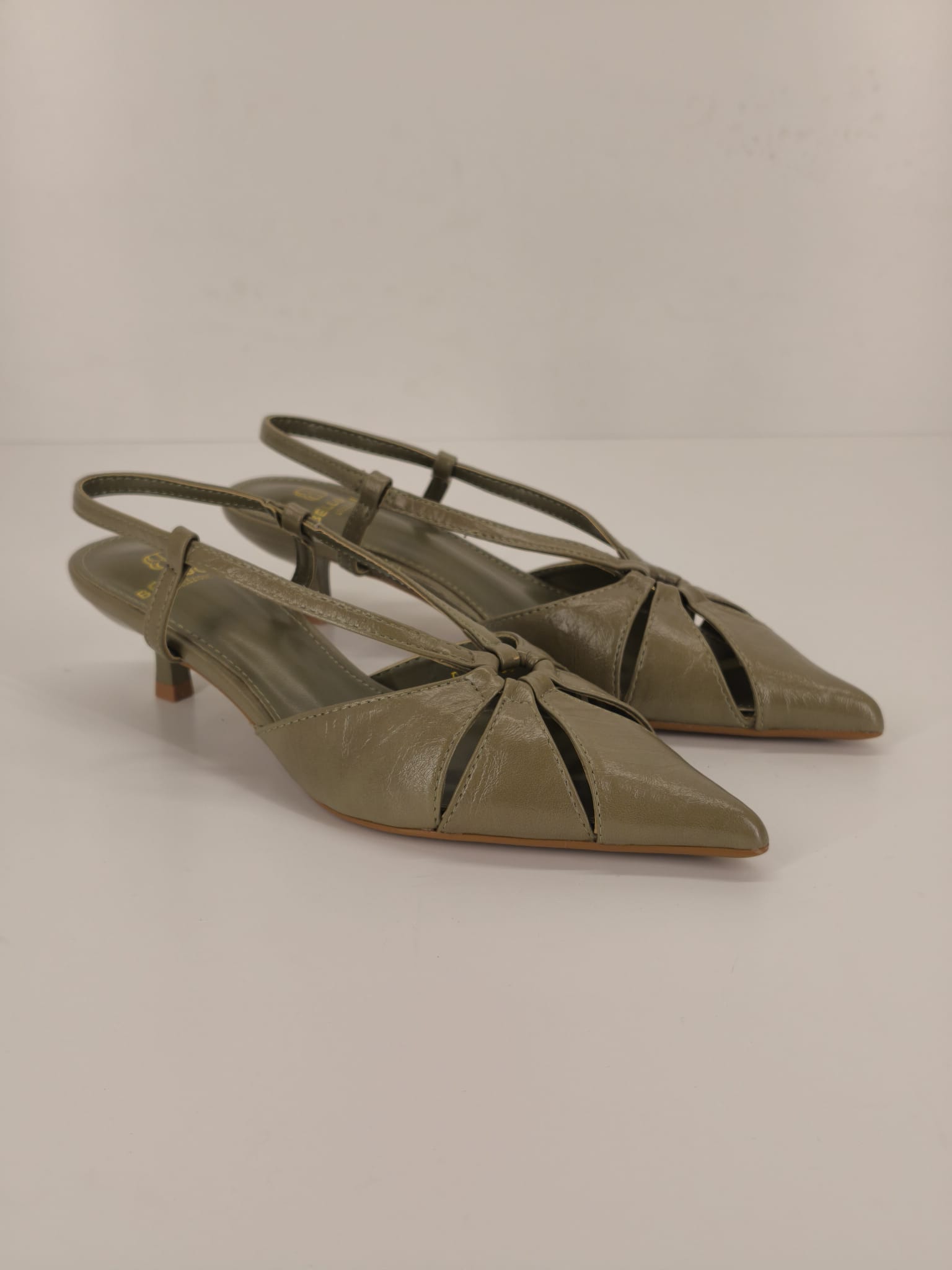 Decollètè in ecopelle, punta particolare, tacco basso comodo.