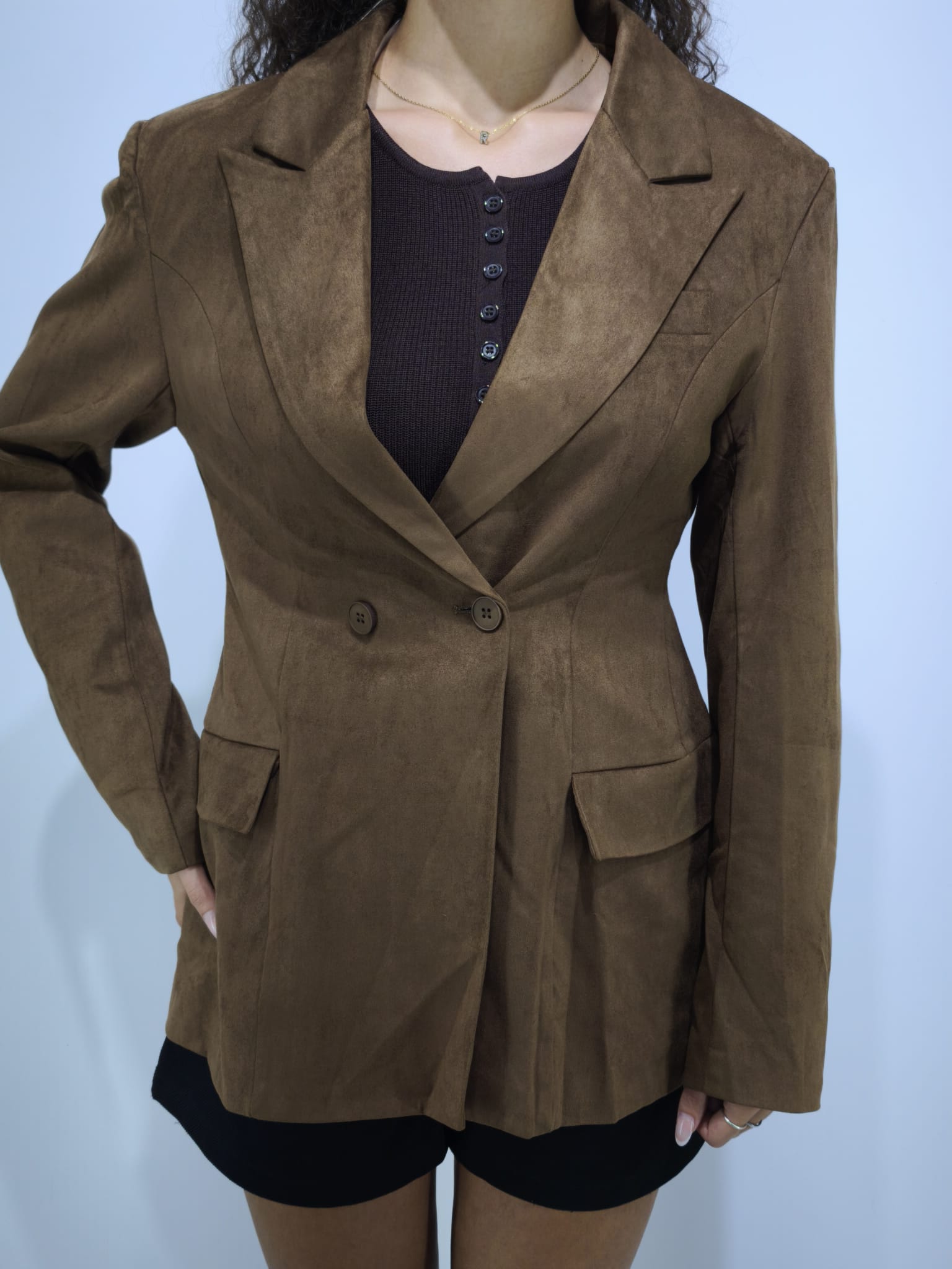 Giacca in tessuto camoscio, foderata, modello avvitato.