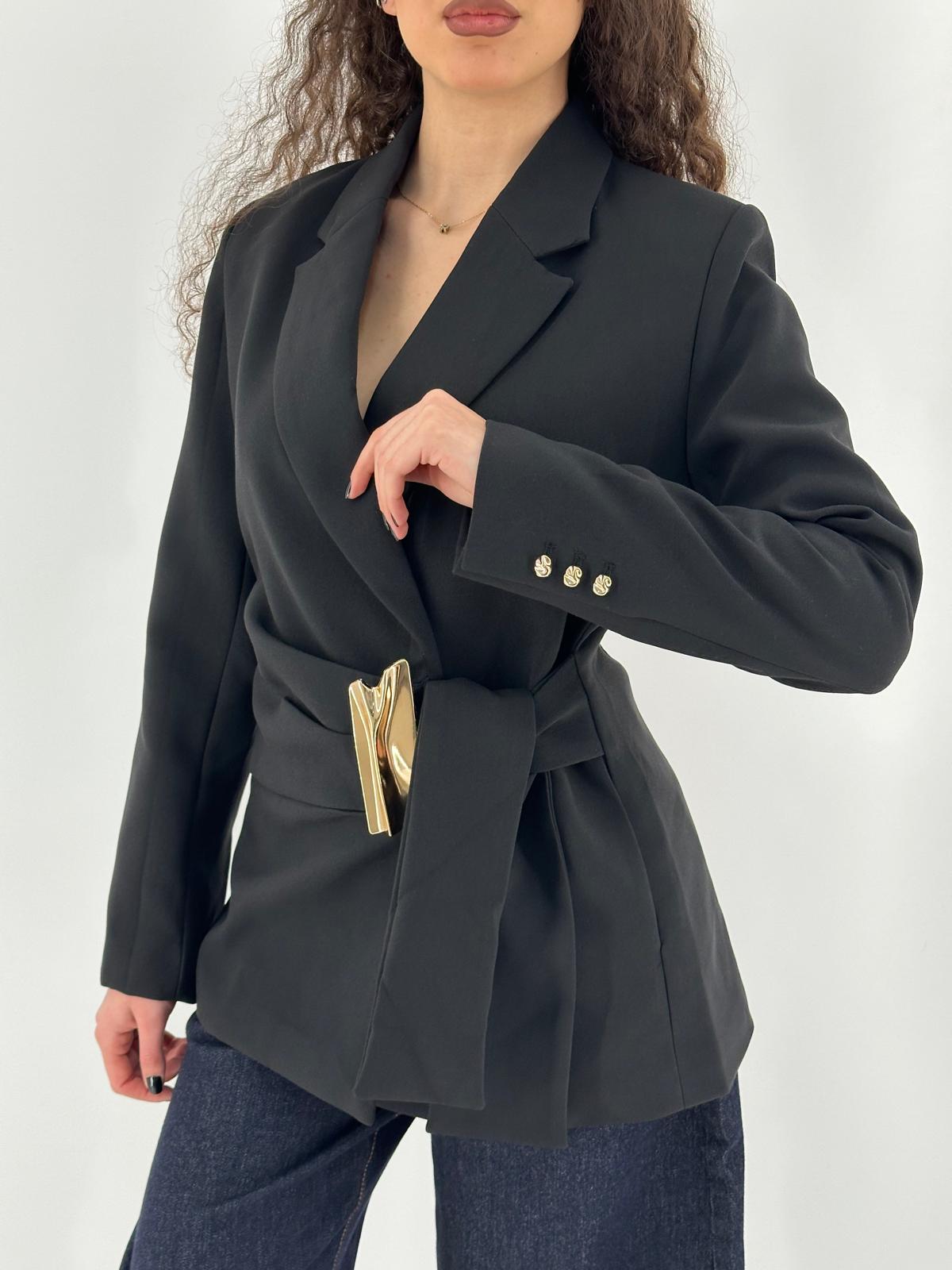 Giacca con particolare chiusura e foderata internamente.