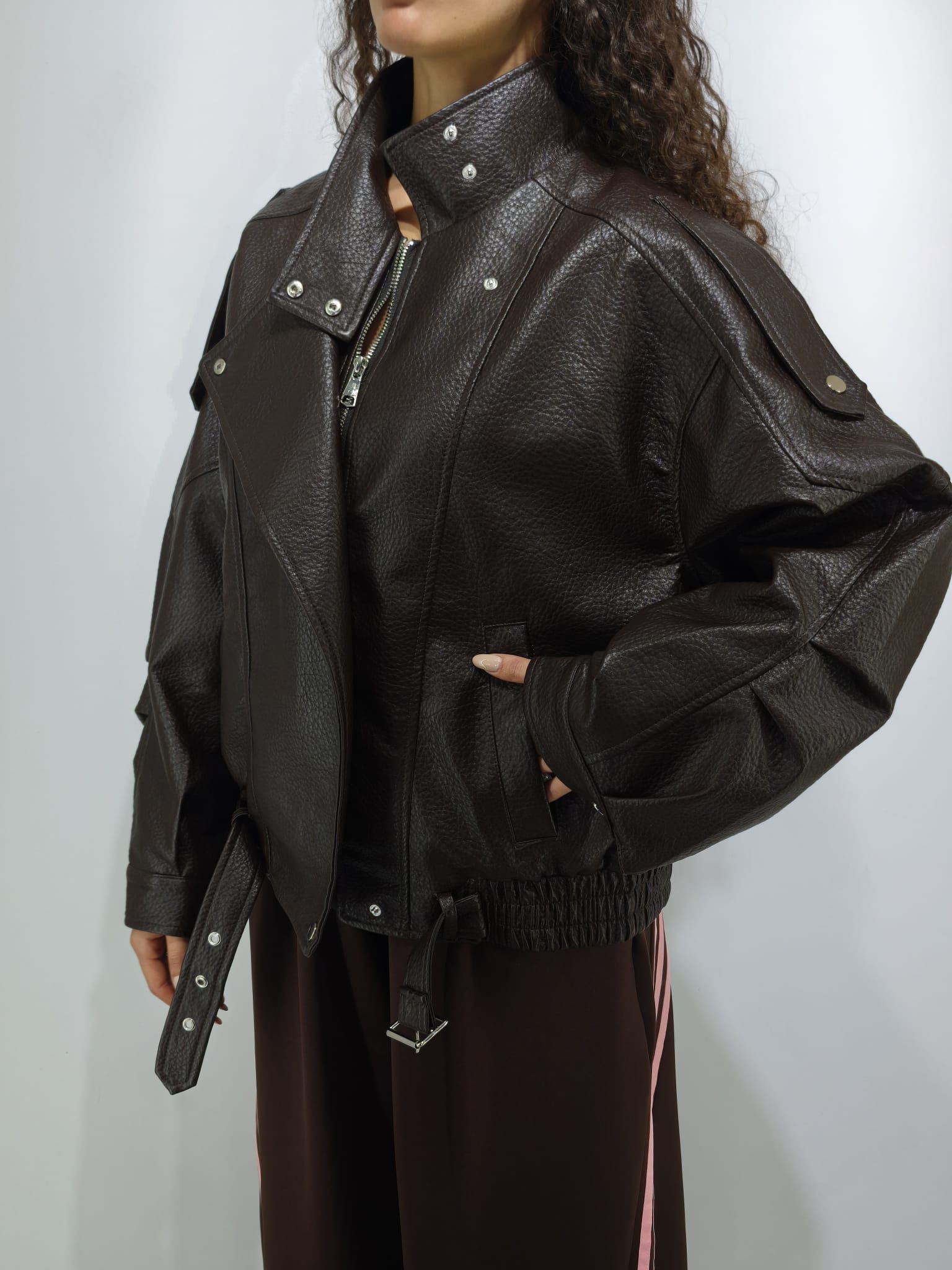 Giubbotto in ecopelle con fodera interna. molla in vita. vestibilità over fino ad una Tg.XL(46)