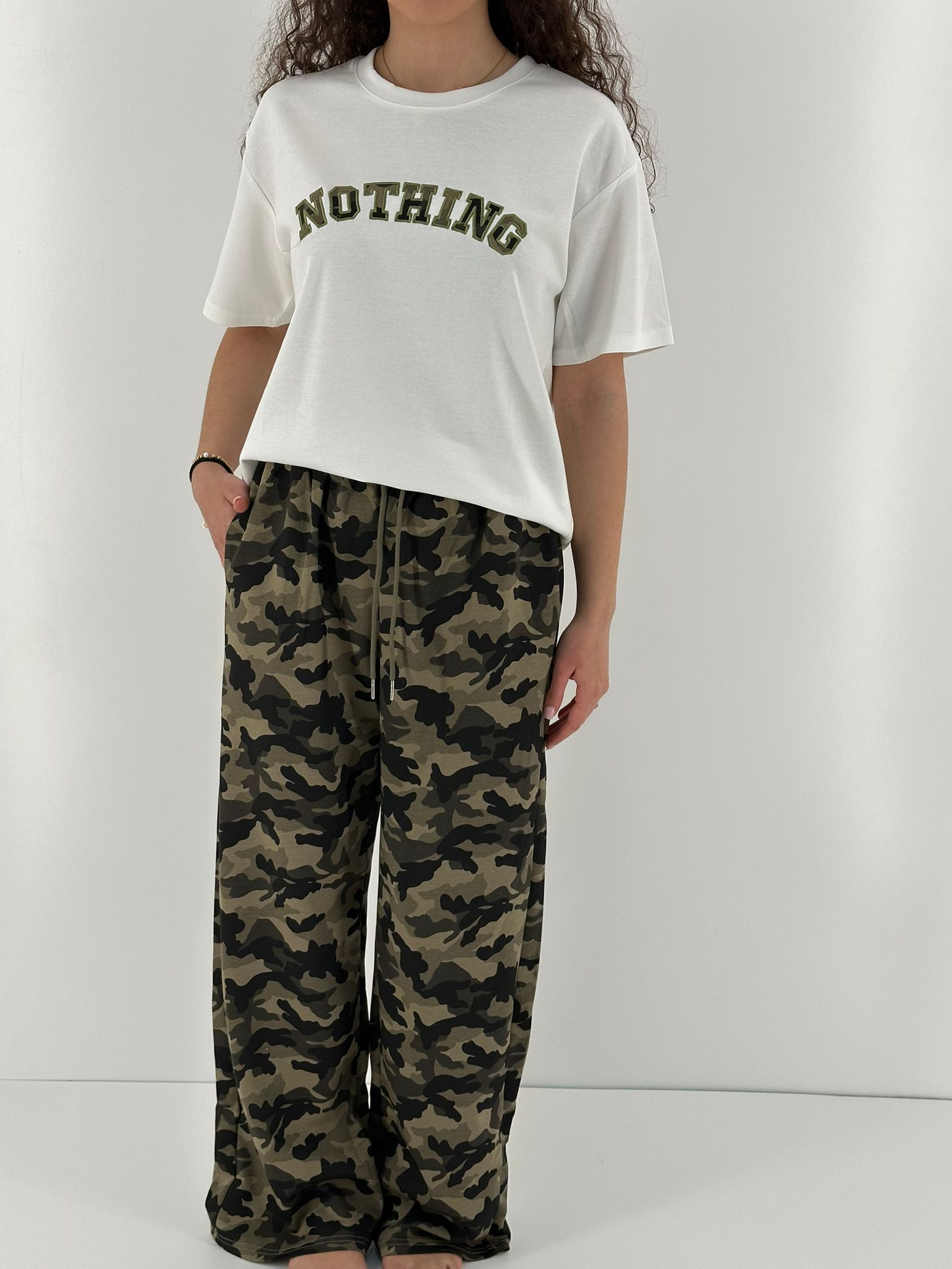 Jeans demin non elastico camouflage modello balloon. Tasche funzionali.