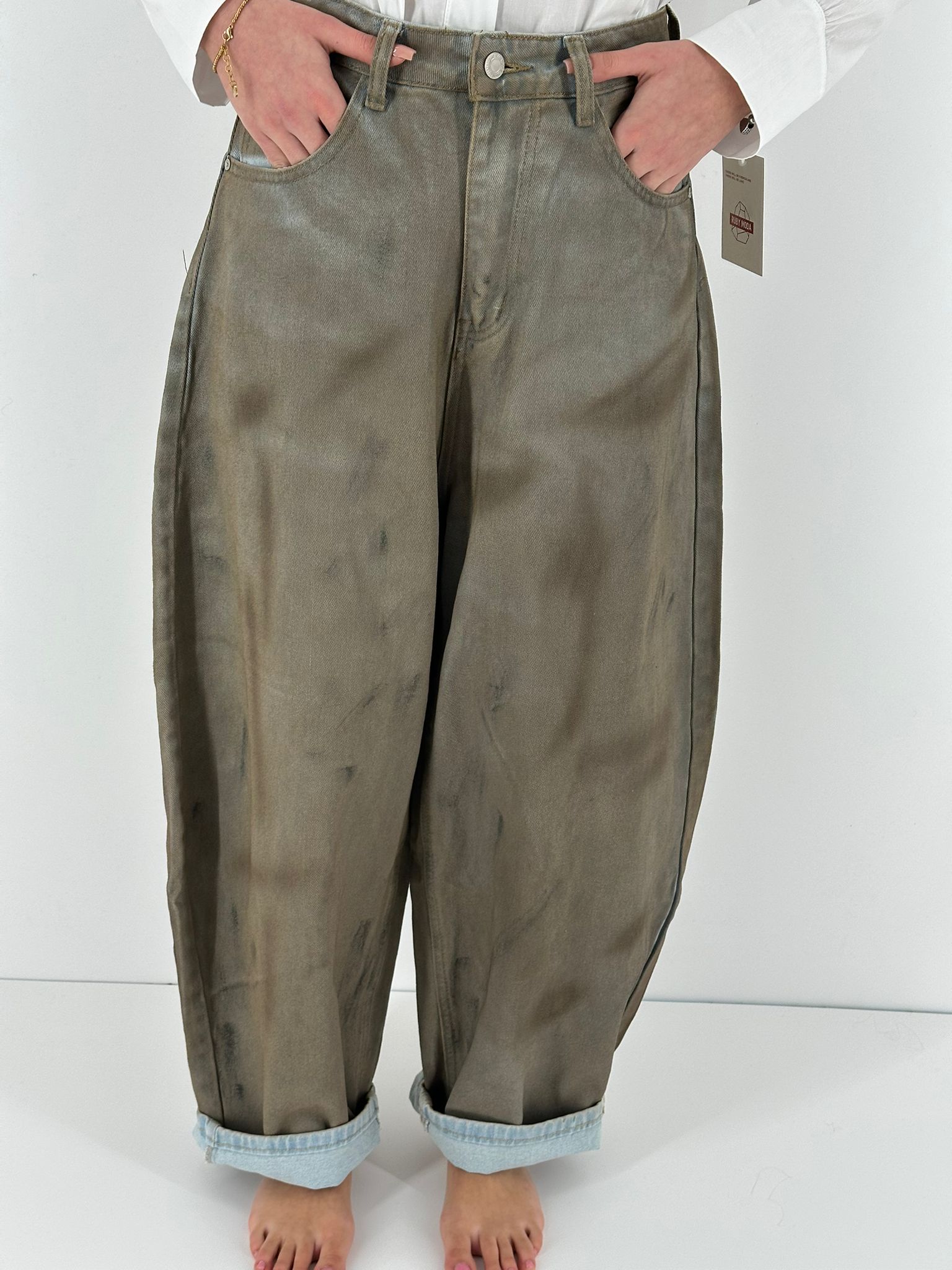 jeans lavaggio particolare, non elastico, modello balloon.