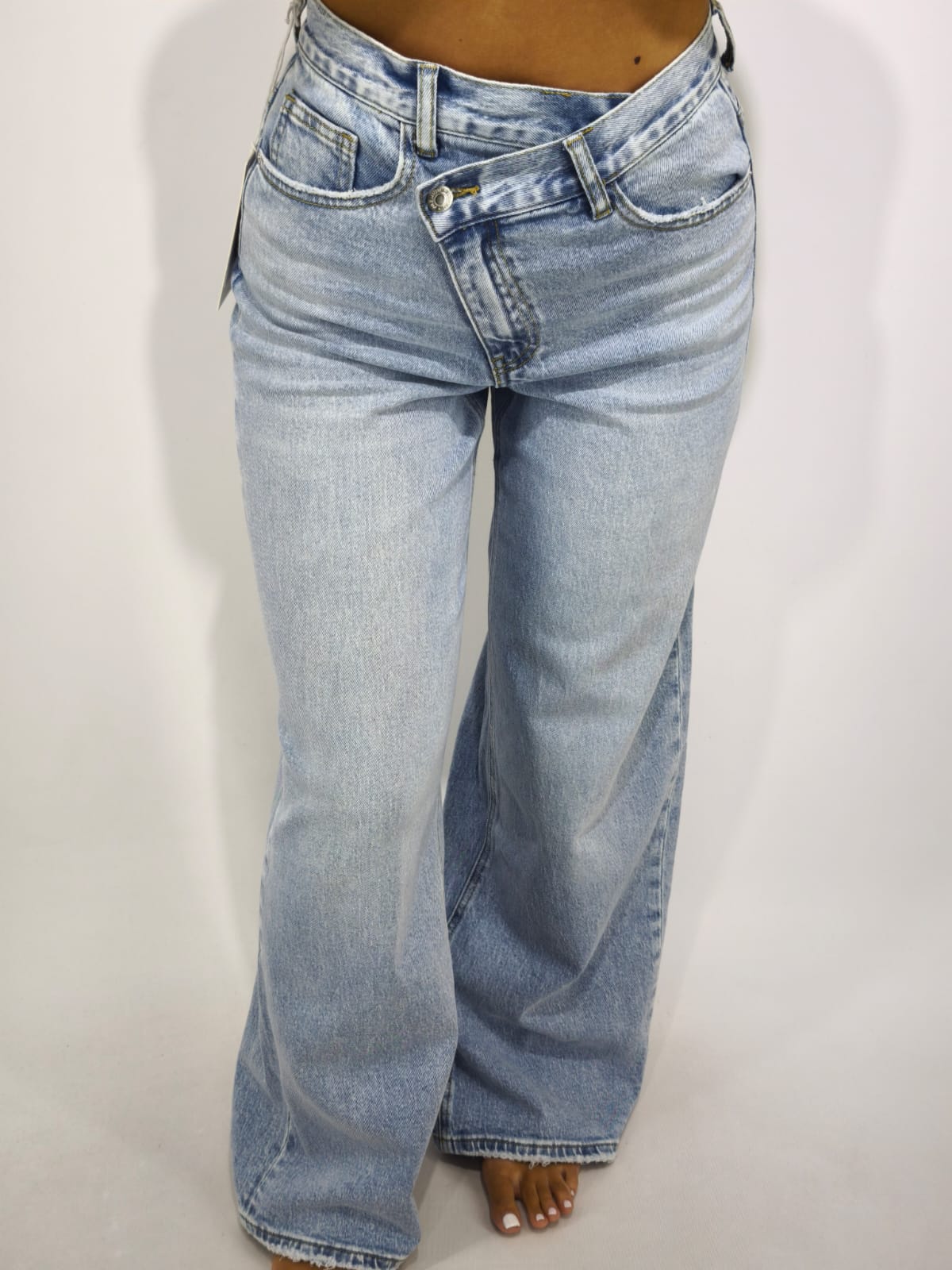 Jeans modello palazzo, leggermente elastico. La modella indossa tg Xs.