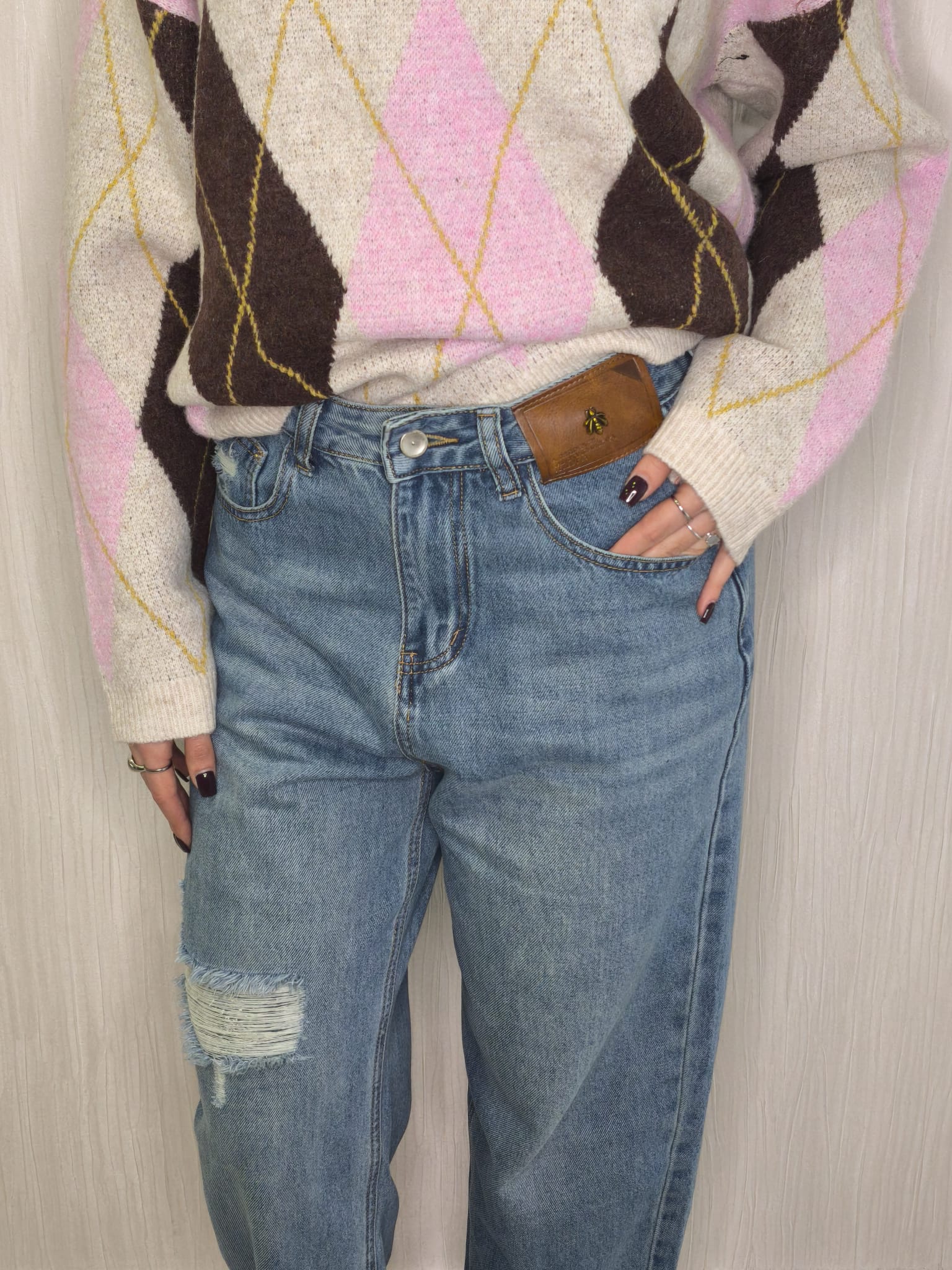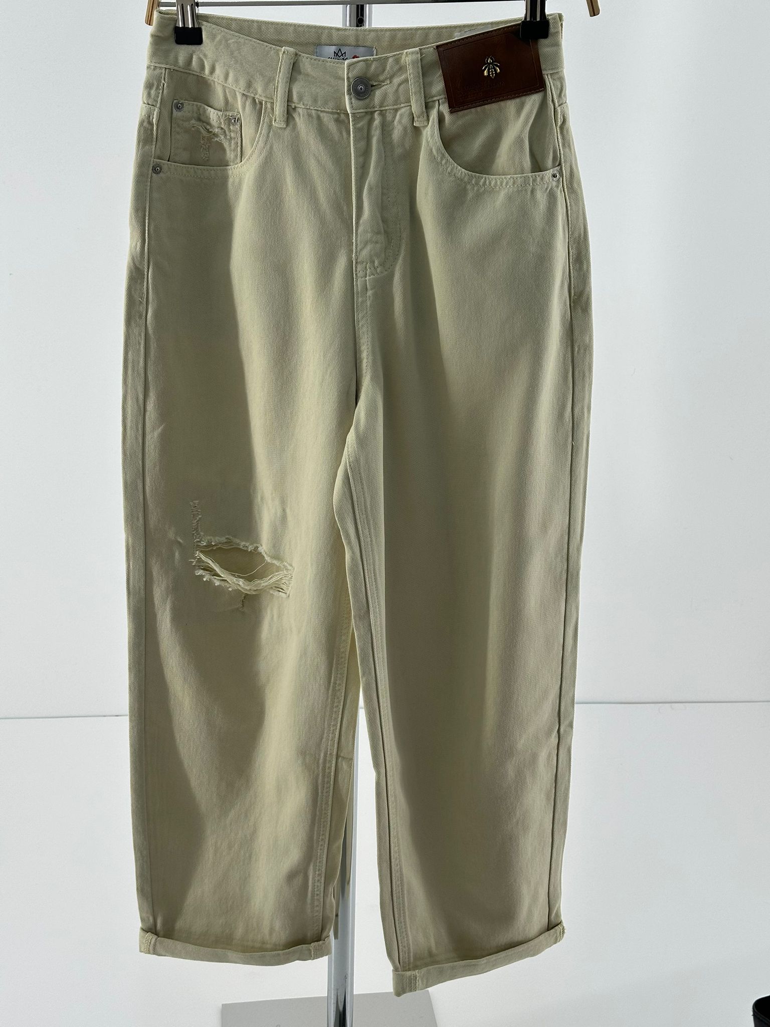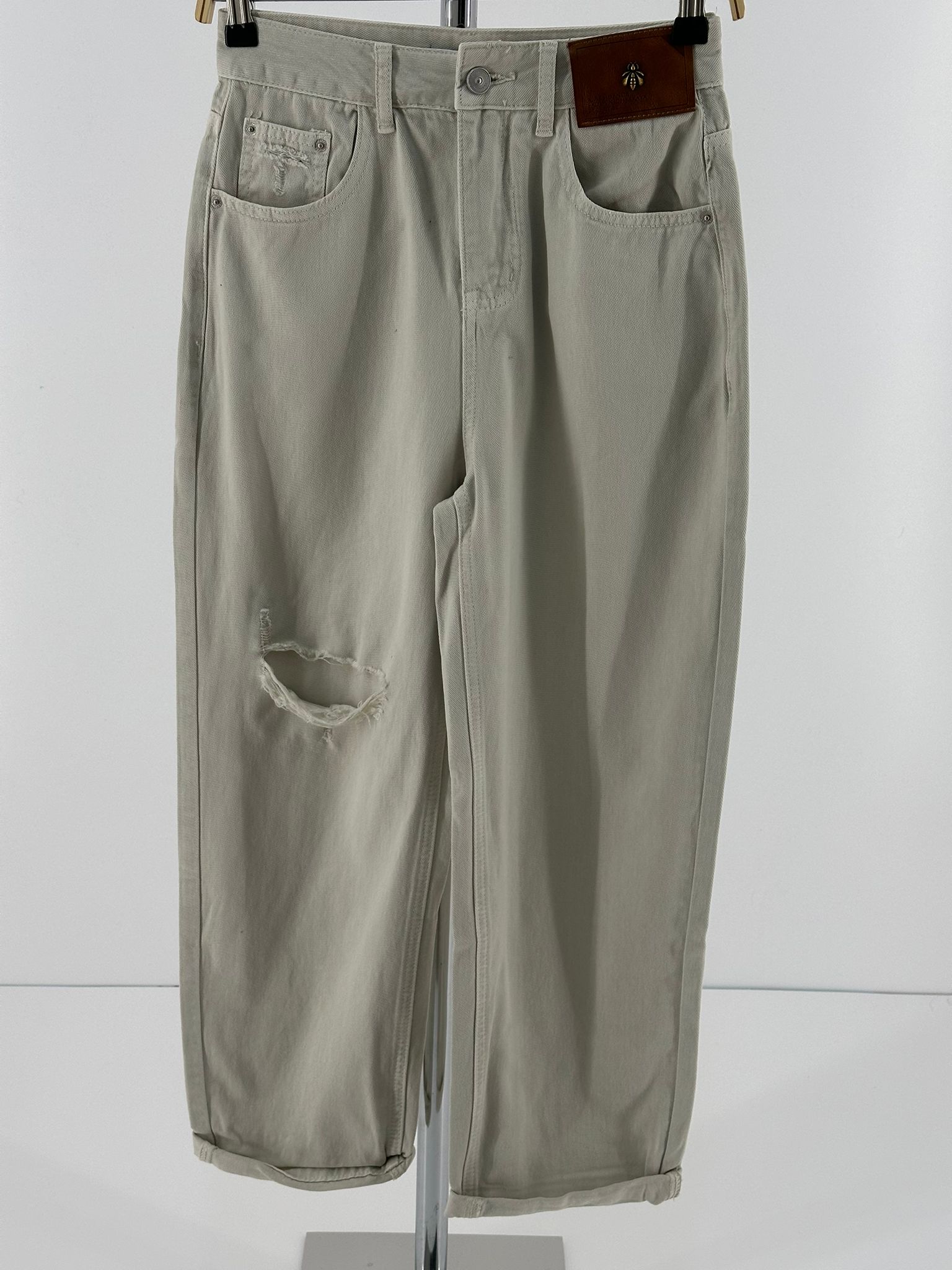 Jeans non elastico, modello boyfriend, con taglio sulla gamba.