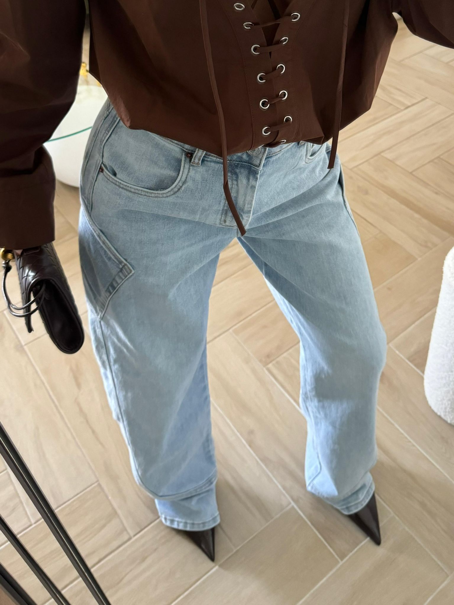 Jeans in tessuto fisso. La modella indossa una tg.36