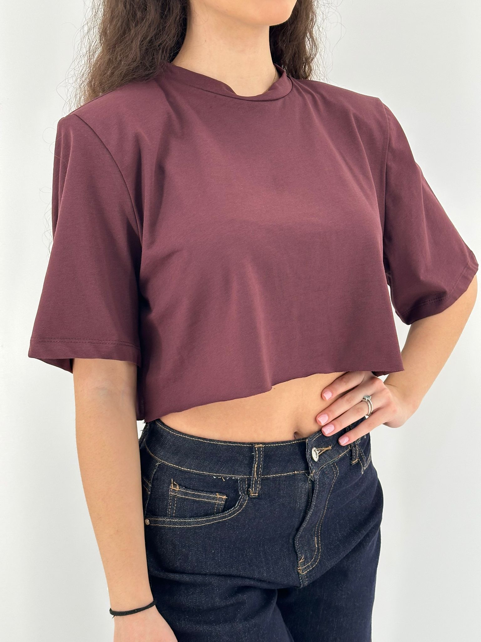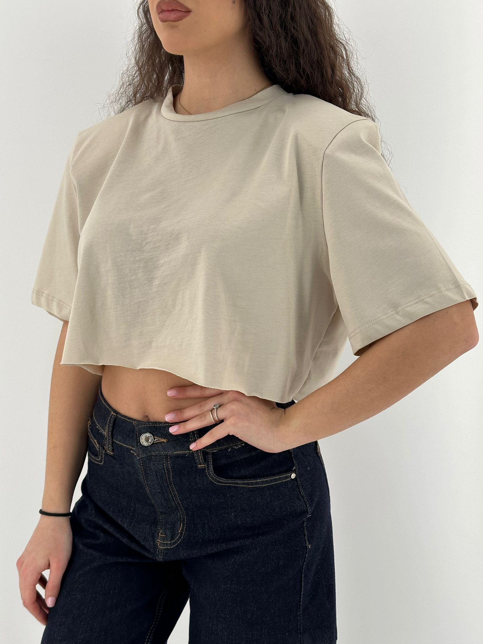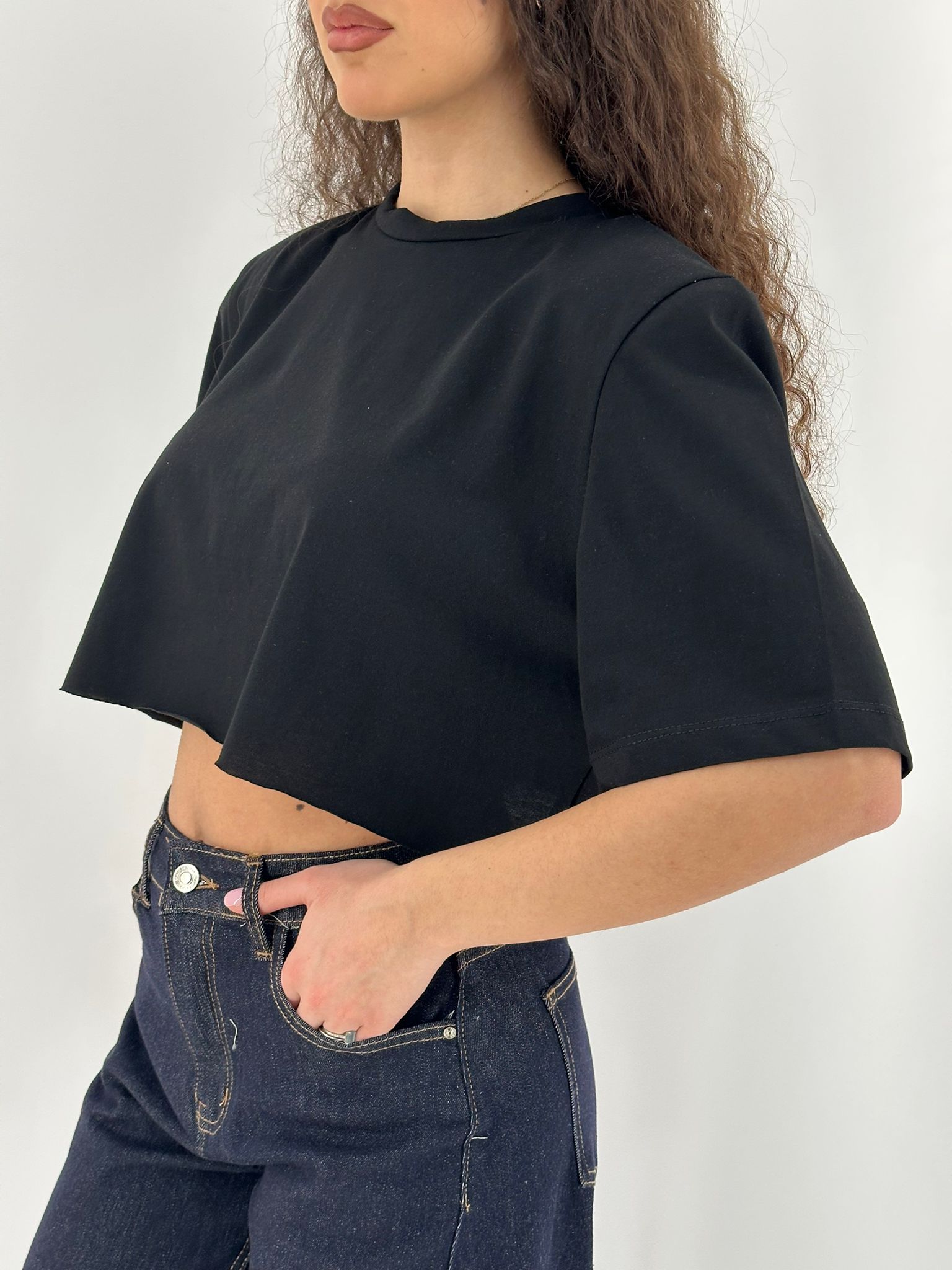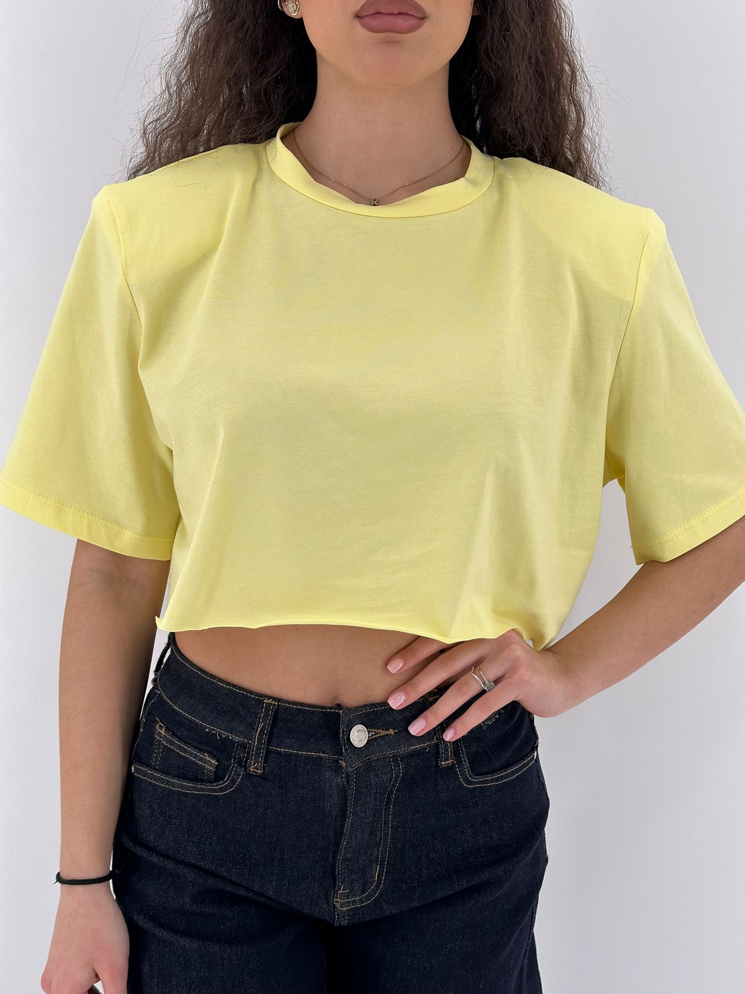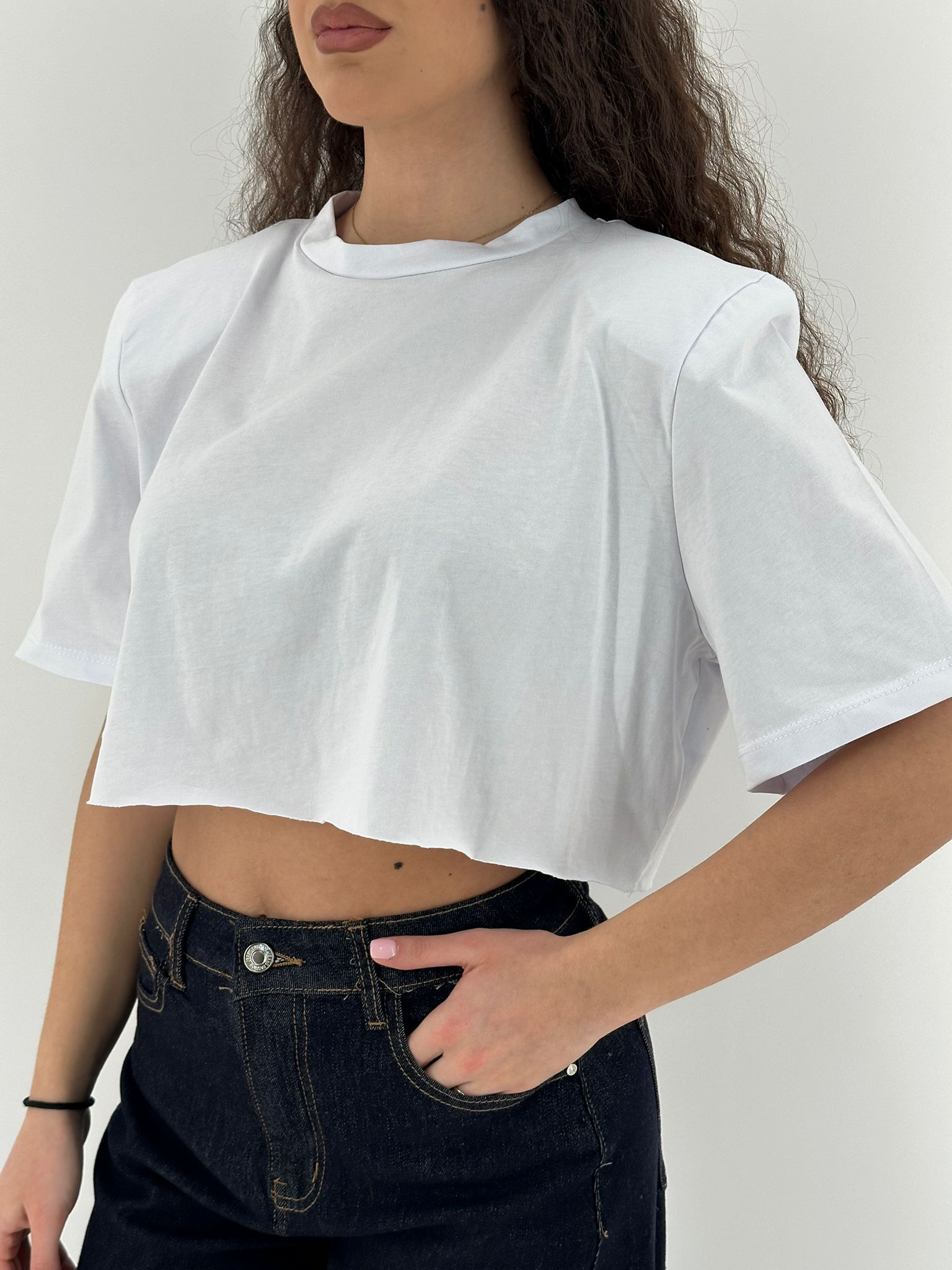 Maglia corta in cotone con spalline.