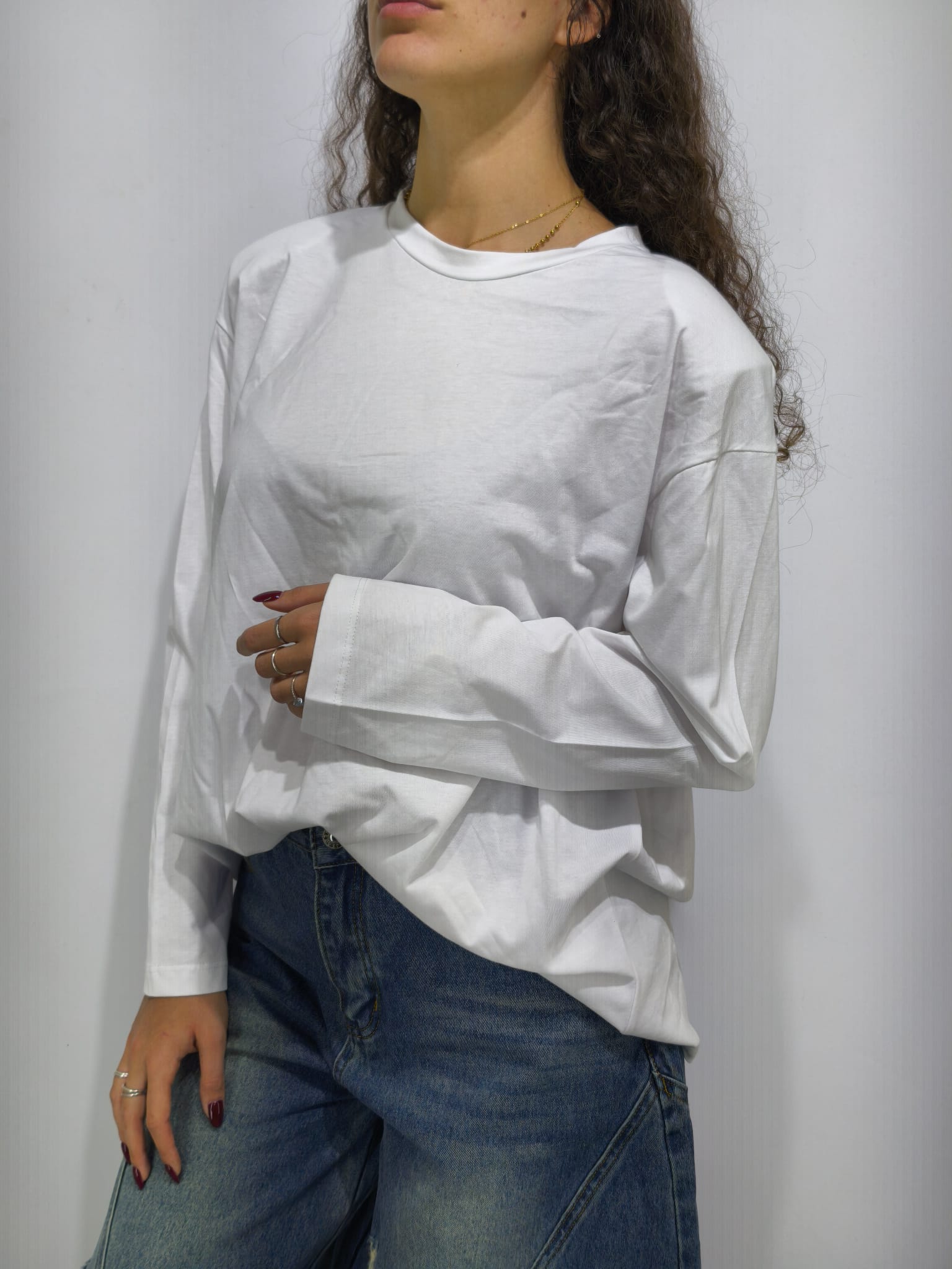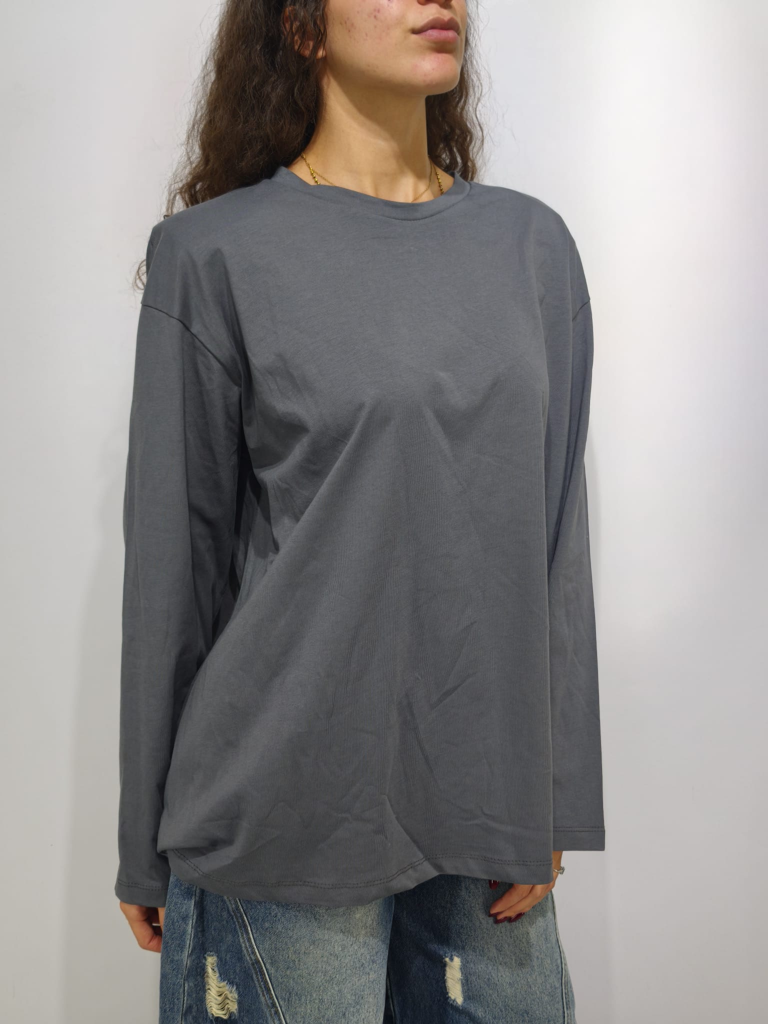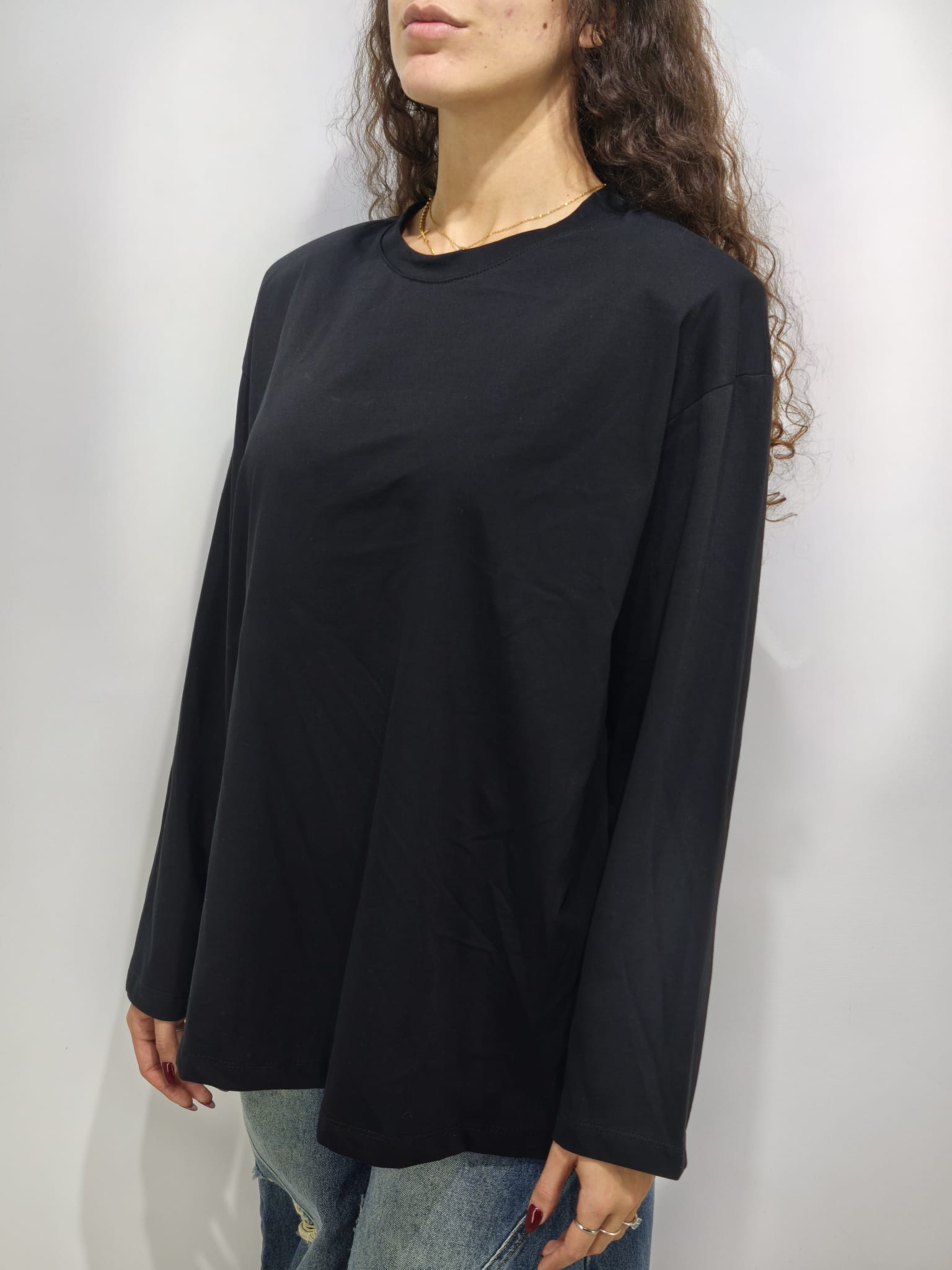 Maglia cotone, modello over size, con spalline.