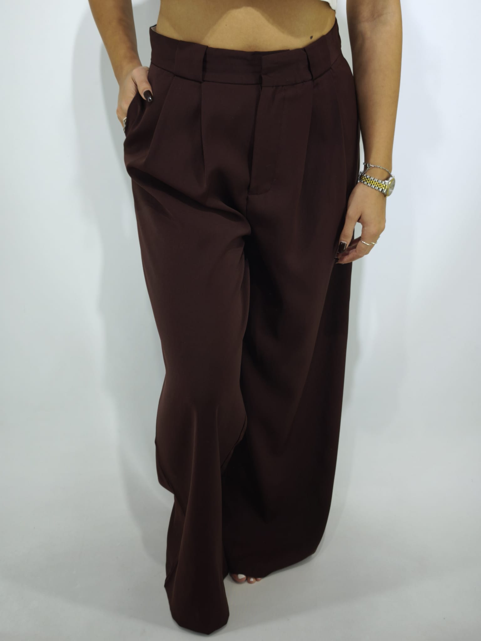 Pantalone palazzo ampio in tessuto con tasche funzonali. Veste fino ad una tg.44(M/L).