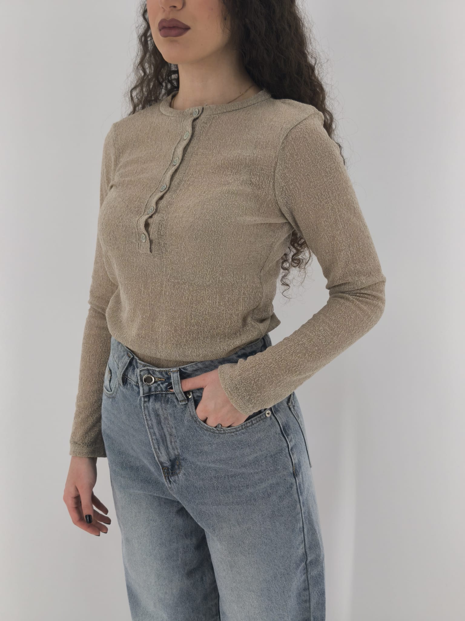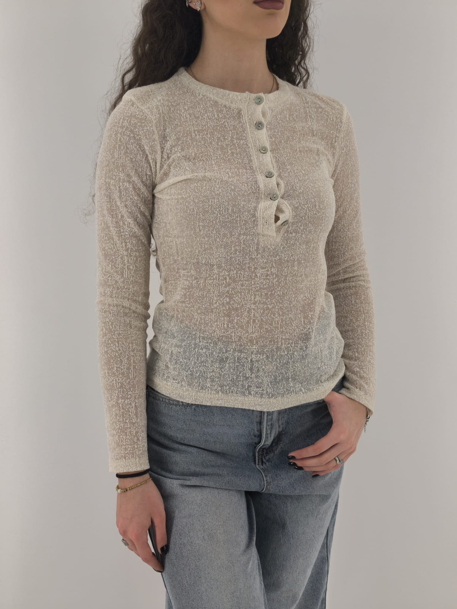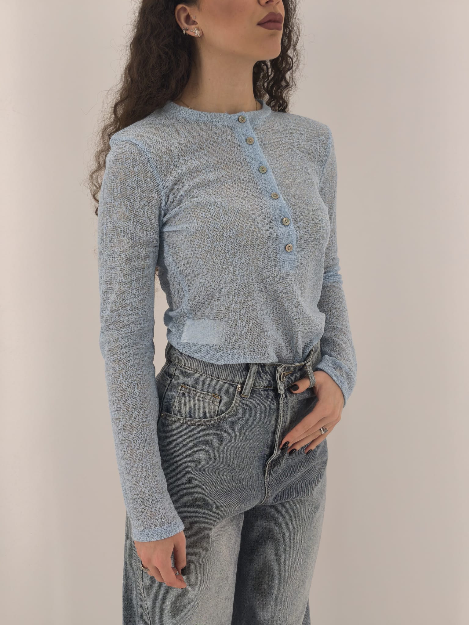 Polo in tessuto trasparente con classica chiusura.