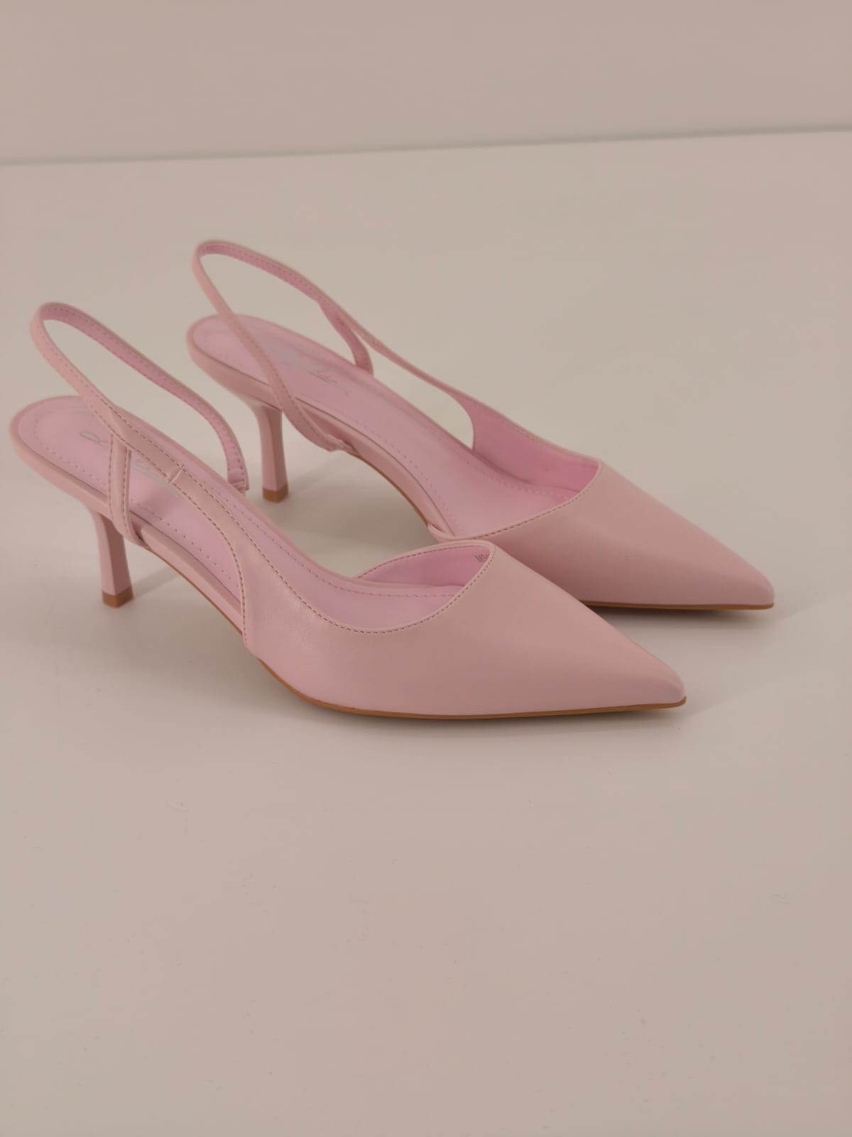 Sabot in materiale lucido con tacco alto circa 8 cm.