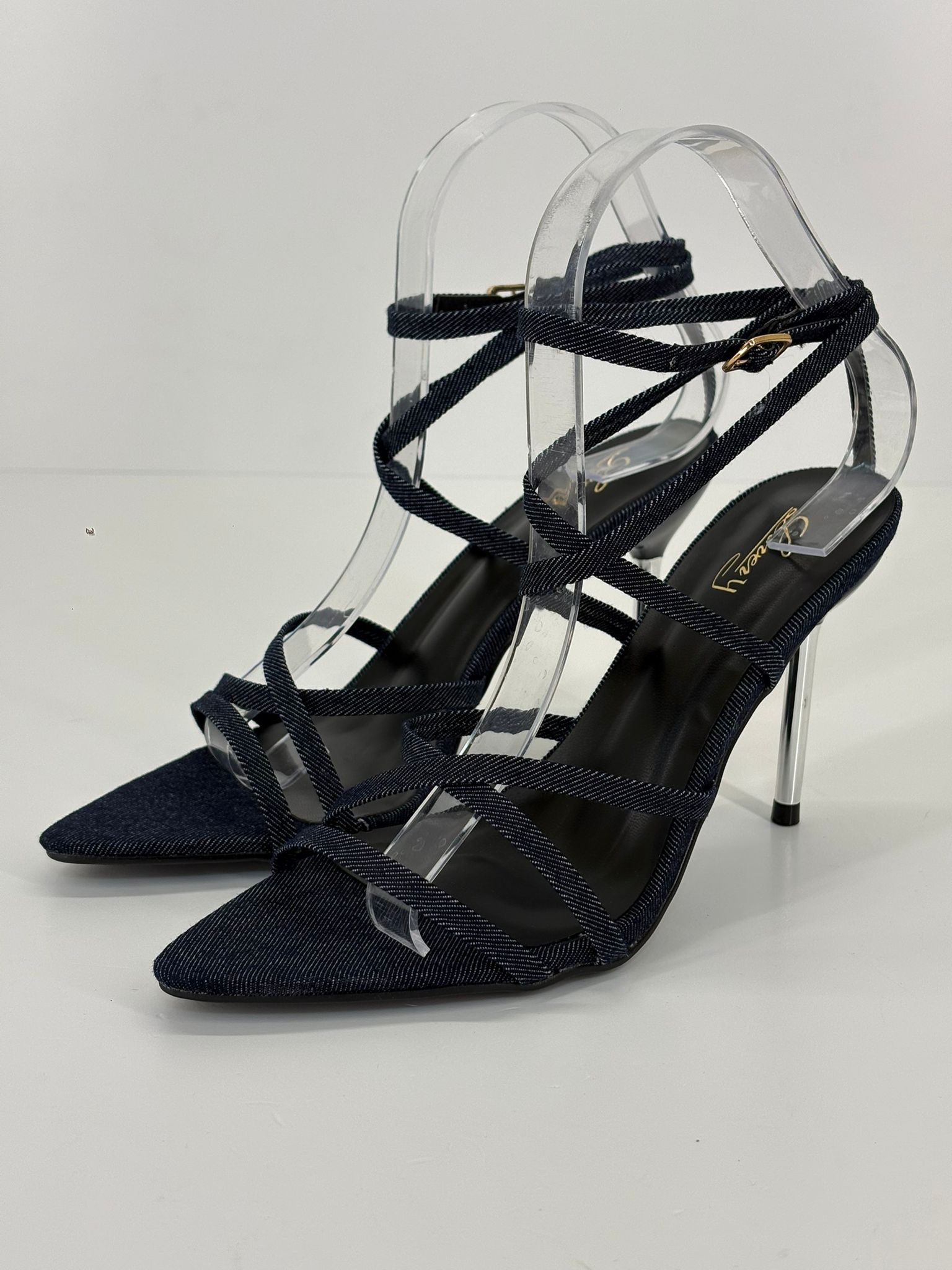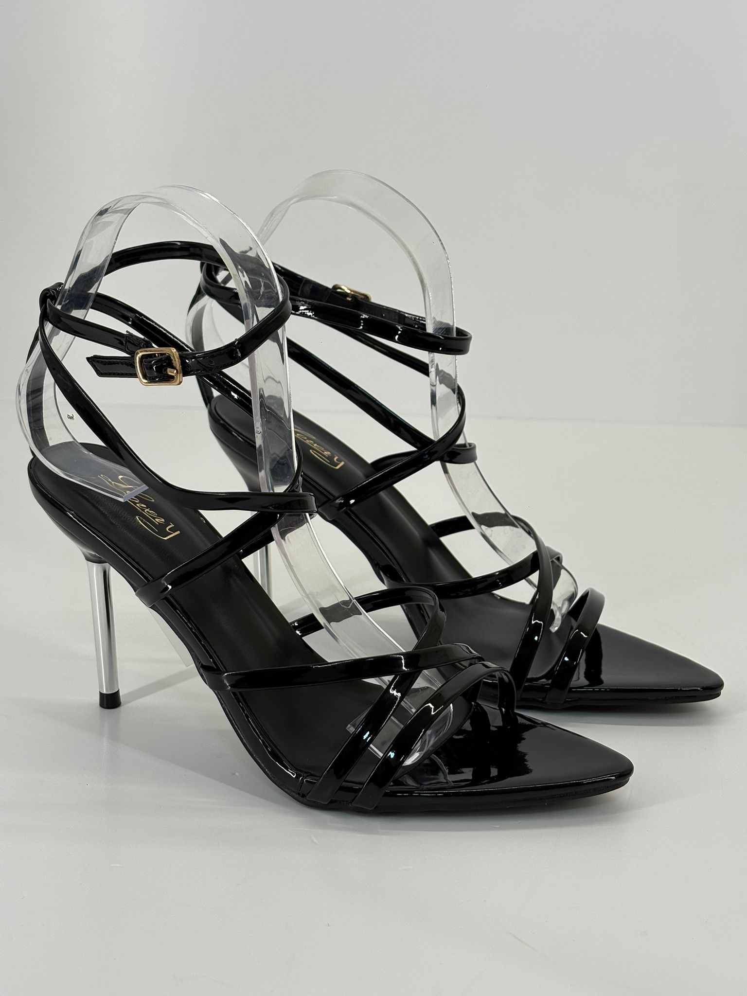 Sandalo stringato con tacco a spillo alto circa 10 cm.