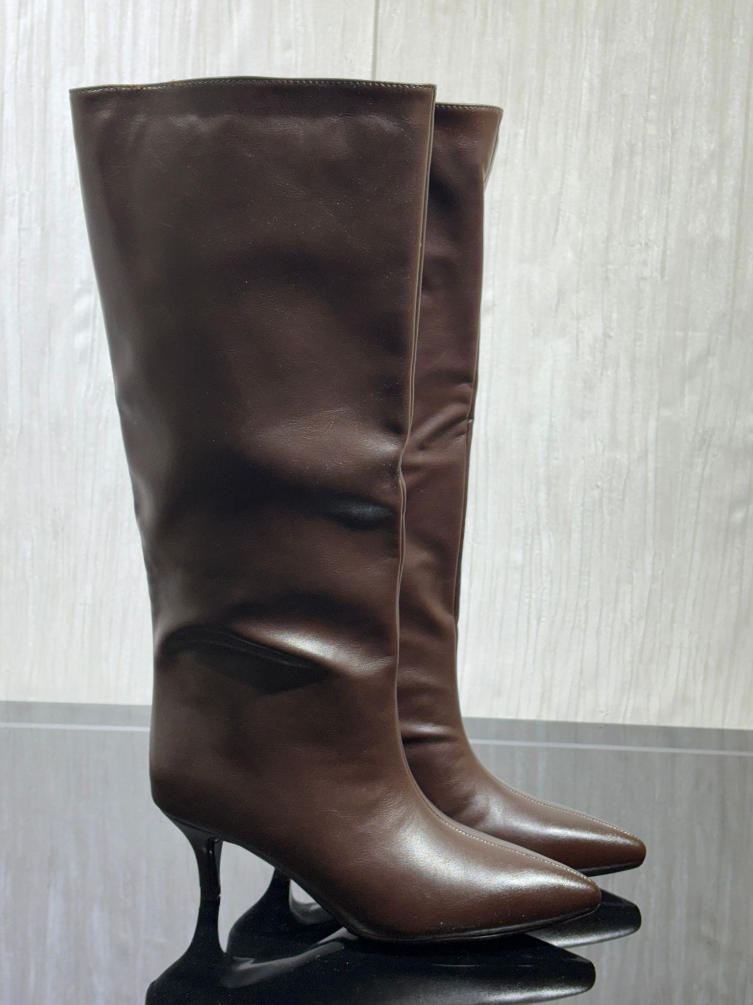 Stivale in ecopelle con tacco alto circa 4 cm. Zip interno caviglia.