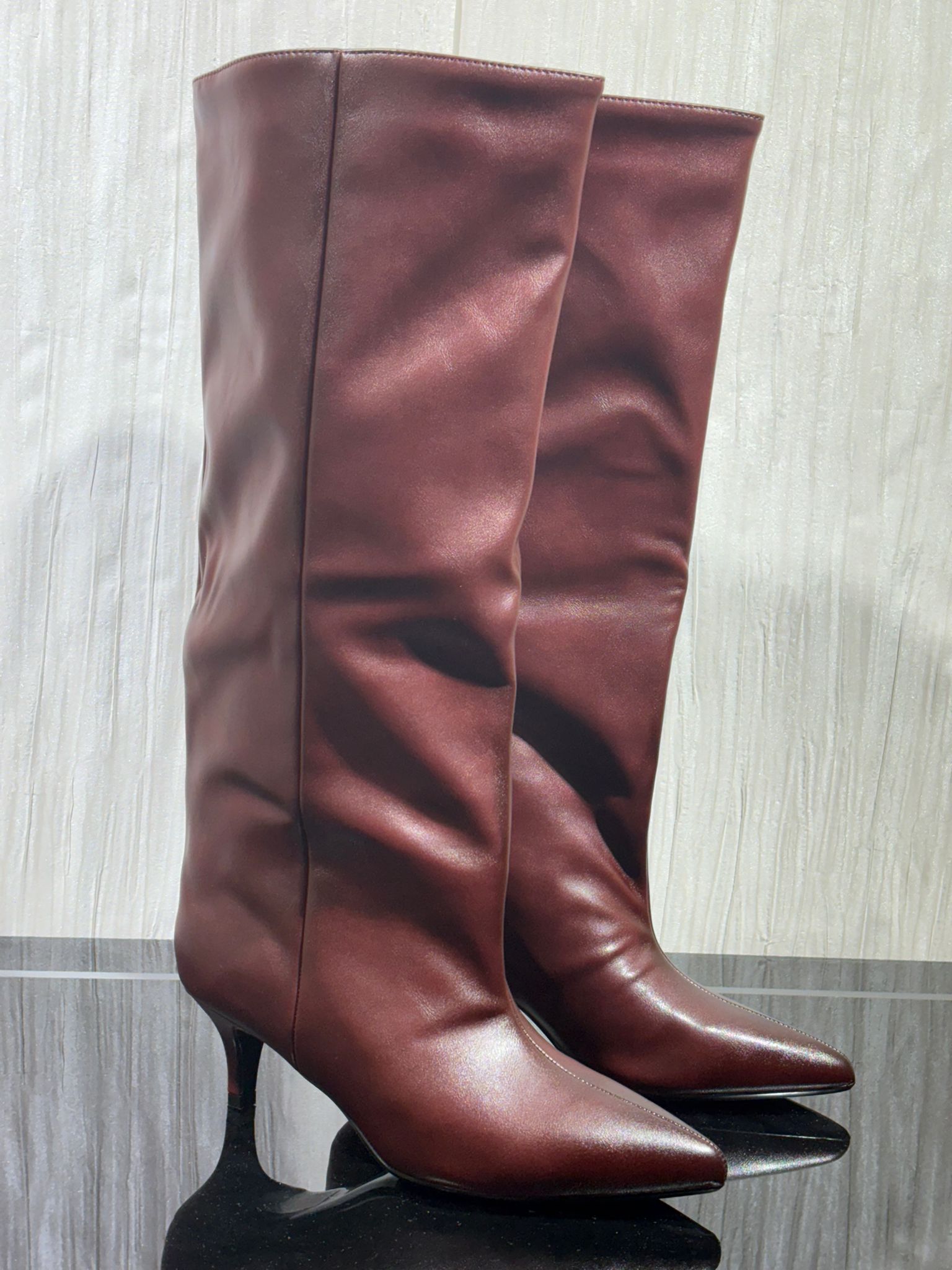 Stivale in ecopelle con tacco a punta alto circa 5cm.